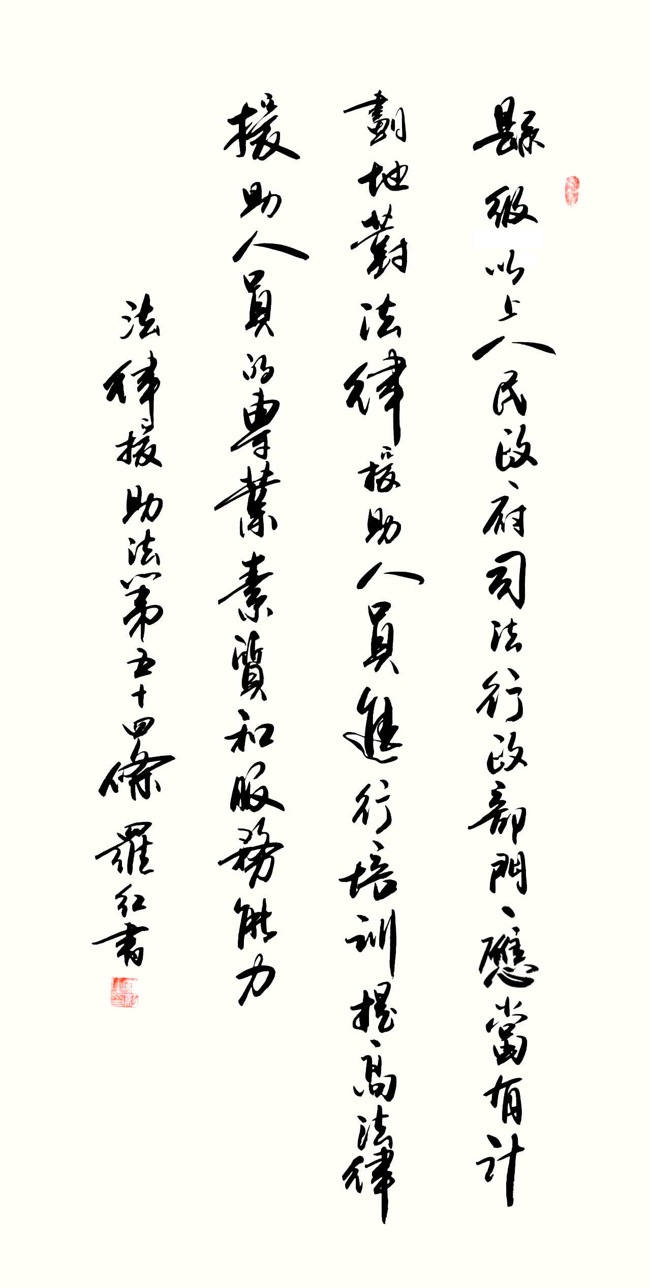 “書·法”活動旨在為創(chuàng)新法治宣傳教育,多開一點腦洞、多花一點心思、多出一點力量、多做一點貢獻,引領和推動更多的人拿起筆來學法、寫法,在不斷“書·法”過程中,提升自身的法治素養(yǎng),在全社會弘揚法治精神。