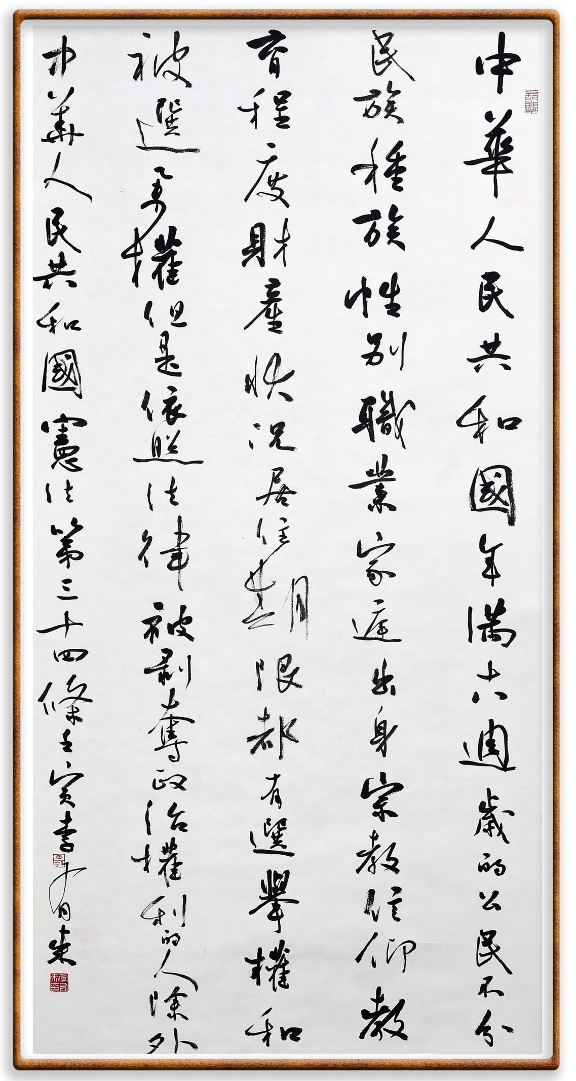 繼《中華人民共和國民法典》《中華人民共和國土地管理法》《中華人民共和國土地管理法實(shí)施條例》《中華人民共和國法律援助法》之后,法治日報(bào)社聯(lián)合北京市司法局、北京書法家協(xié)會(huì),將筆端對準(zhǔn)《中華人民共和國憲法》和《中華人民共和國行政處罰法》。