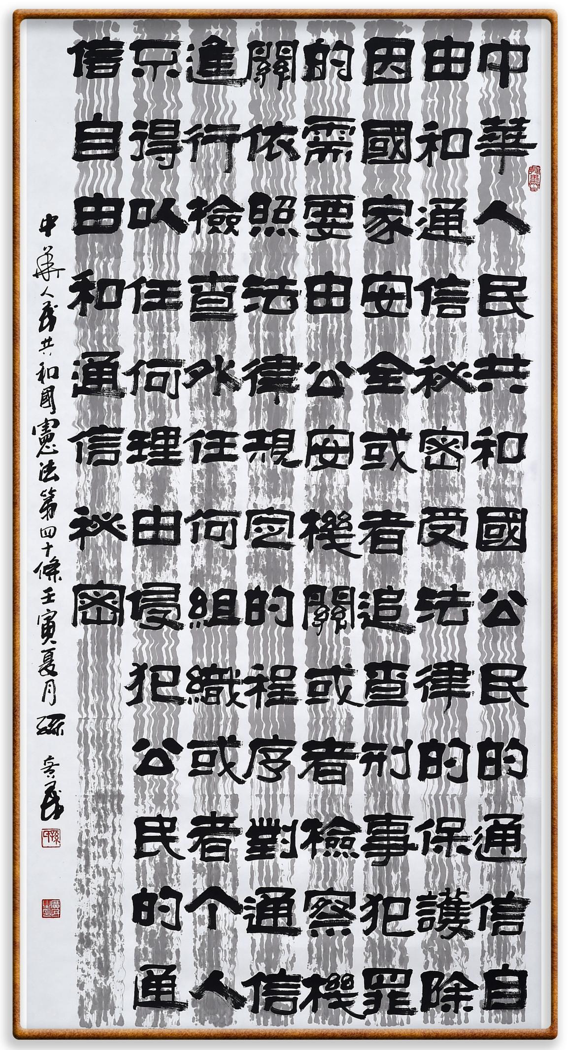 繼《中華人民共和國民法典》《中華人民共和國土地管理法》《中華人民共和國土地管理法實(shí)施條例》《中華人民共和國法律援助法》之后,法治日報社聯(lián)合北京市司法局、北京市書法家協(xié)會,將筆端對準(zhǔn)《中華人民共和國憲法》和《中華人民共和國行政處罰法》。