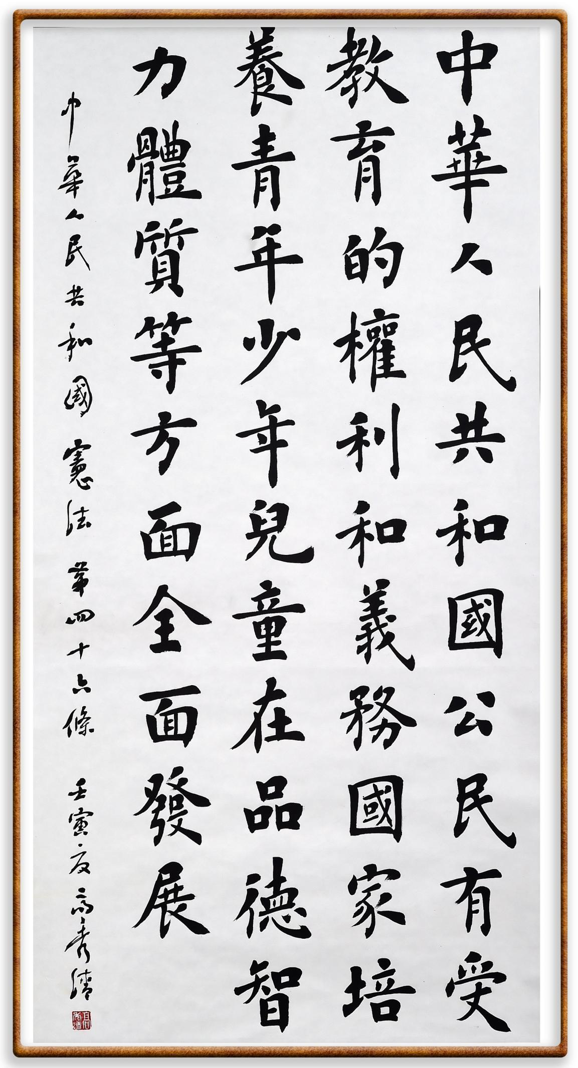 繼《中華人民共和國民法典》《中華人民共和國土地管理法》《中華人民共和國土地管理法實施條例》《中華人民共和國法律援助法》之后,法治日報社聯(lián)合北京市司法局、北京書法家協(xié)會,將筆端對準《中華人民共和國憲法》和《中華人民共和國行政處罰法》。