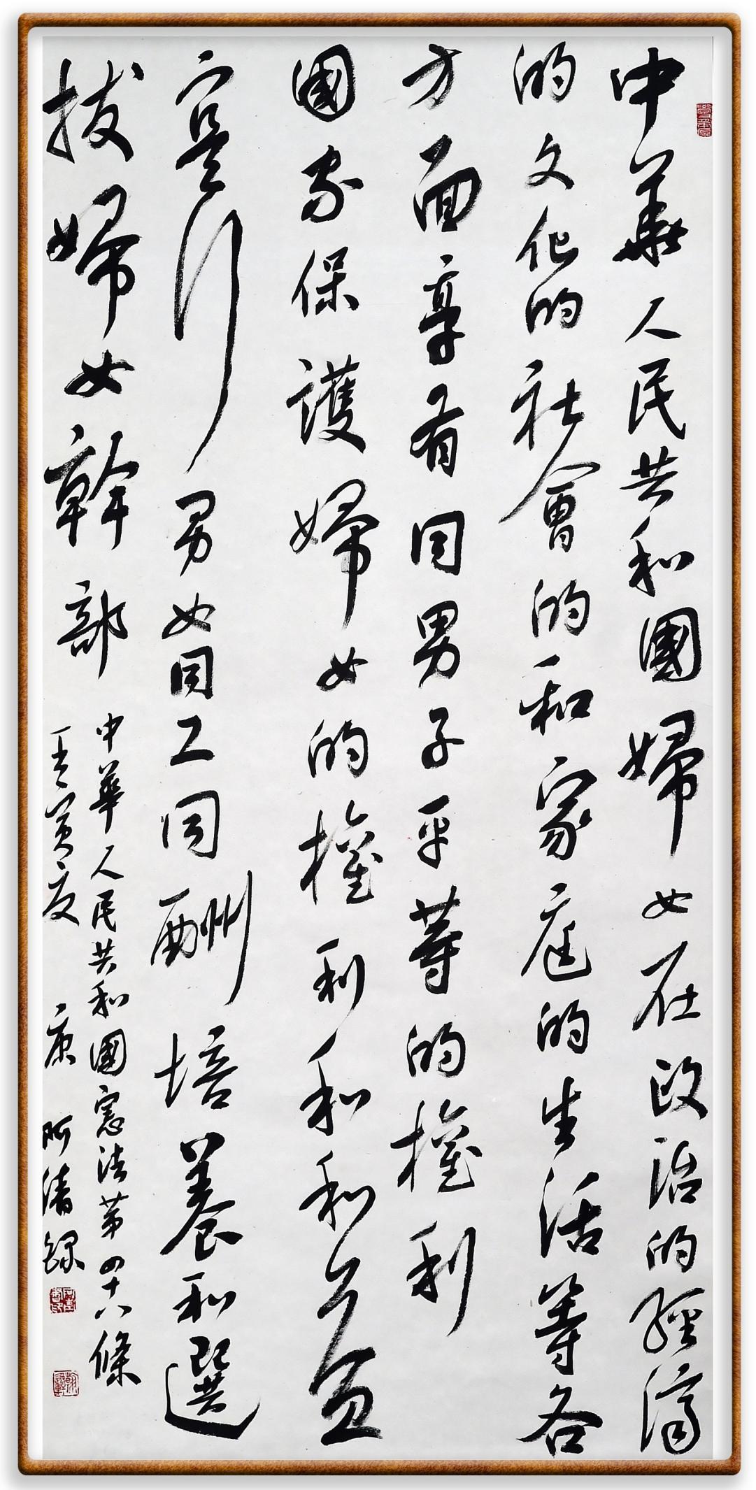 繼《中華人民共和國民法典》《中華人民共和國土地管理法》《中華人民共和國土地管理法實施條例》《中華人民共和國法律援助法》之后,法治日報社聯(lián)合北京市司法局、北京書法家協(xié)會,將筆端對準(zhǔn)《中華人民共和國憲法》和《中華人民共和國行政處罰法》。