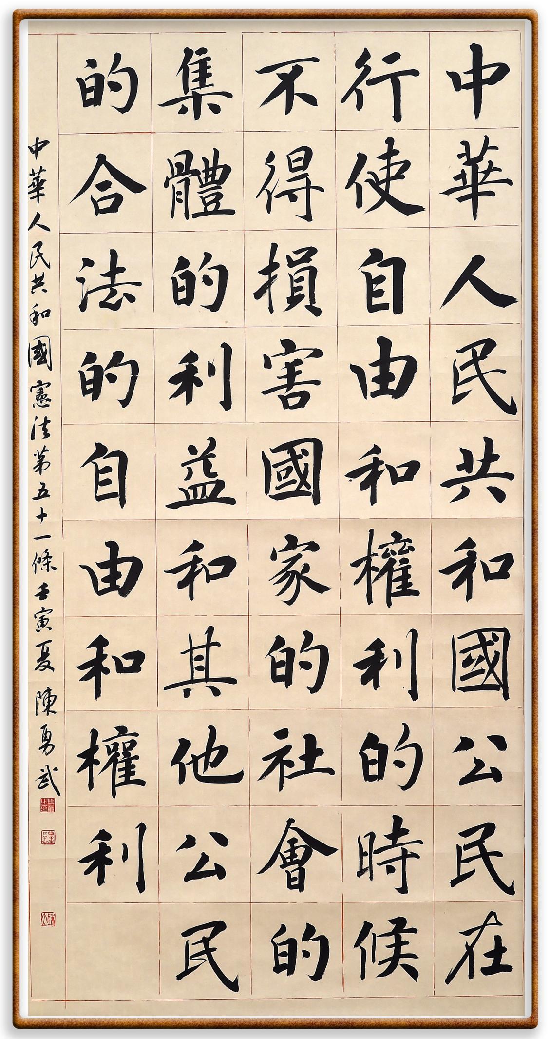 繼《中華人民共和國(guó)民法典》《中華人民共和國(guó)土地管理法》《中華人民共和國(guó)土地管理法實(shí)施條例》《中華人民共和國(guó)法律援助法》之后,法治日?qǐng)?bào)社聯(lián)合北京市司法局、北京書(shū)法家協(xié)會(huì),將筆端對(duì)準(zhǔn)《中華人民共和國(guó)憲法》和《中華人民共和國(guó)行政處罰法》。