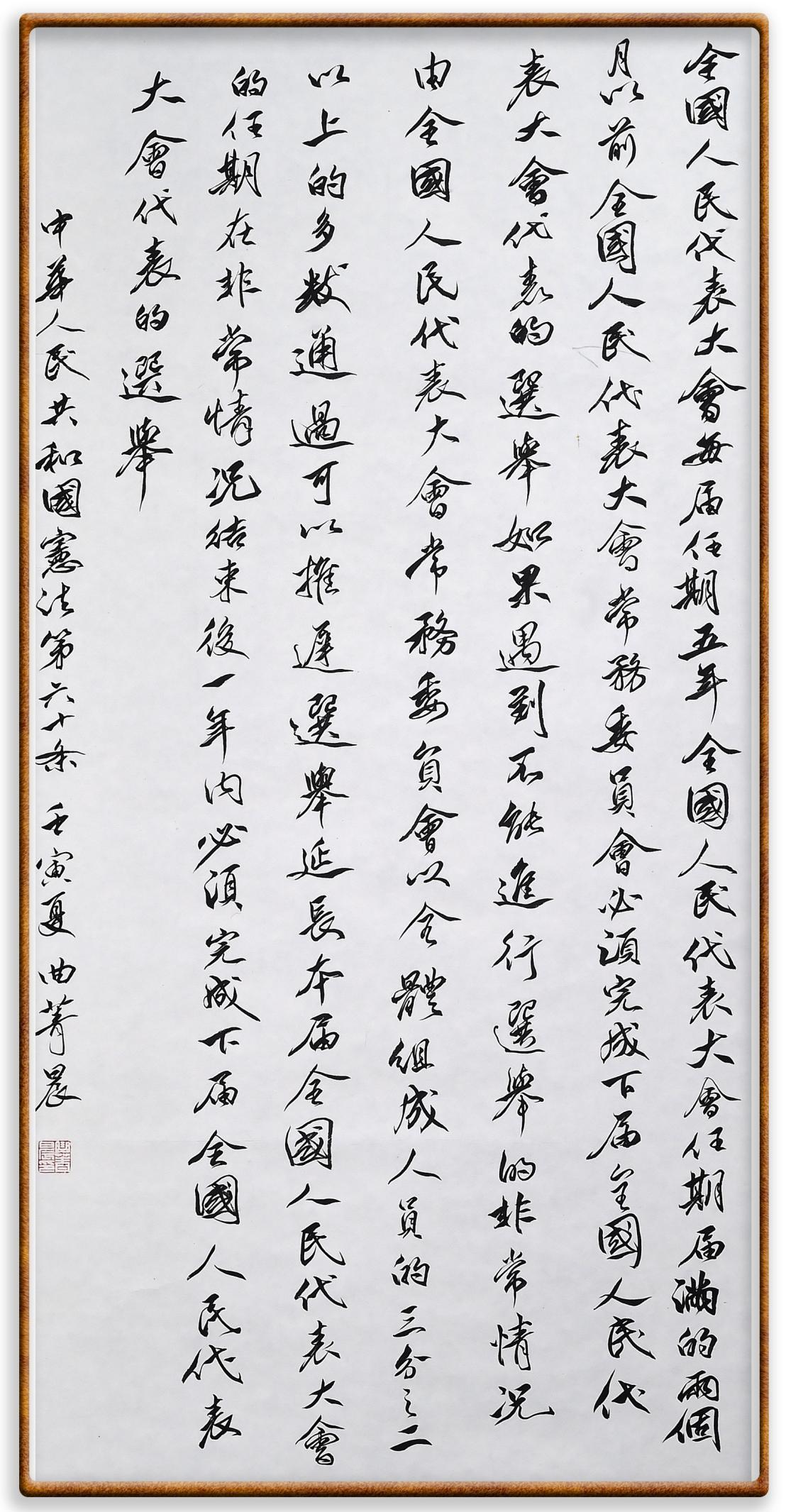 繼《中華人民共和國民法典》《中華人民共和國土地管理法》《中華人民共和國土地管理法實施條例》《中華人民共和國法律援助法》之后,法治日報社聯(lián)合北京市司法局、北京書法家協(xié)會,將筆端對準《中華人民共和國憲法》和《中華人民共和國行政處罰法》。