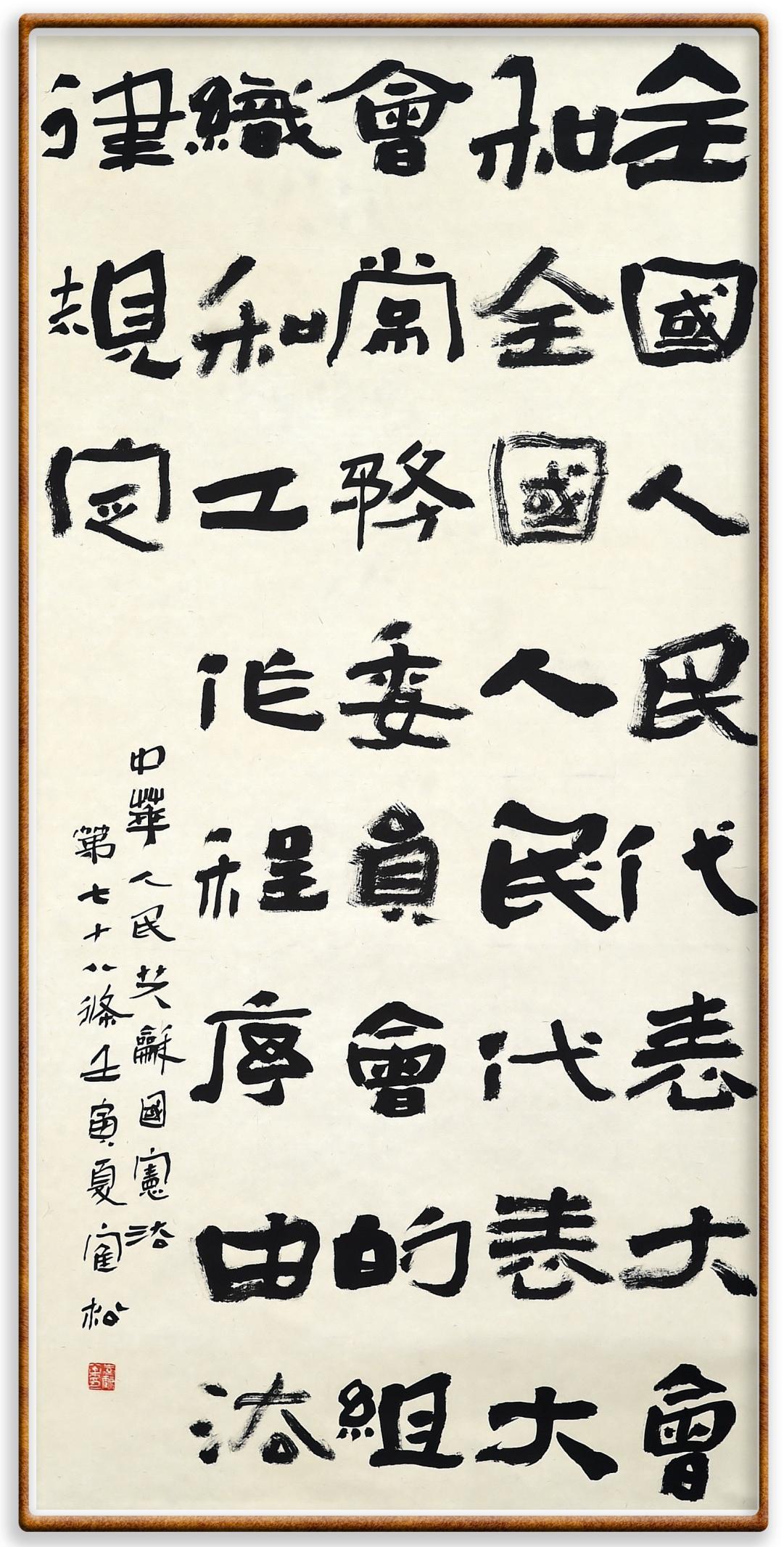 繼《中華人民共和國民法典》《中華人民共和國土地管理法》《中華人民共和國土地管理法實施條例》《中華人民共和國法律援助法》之后,法治日報社聯(lián)合北京市司法局、北京書法家協(xié)會,將筆端對準(zhǔn)《中華人民共和國憲法》和《中華人民共和國行政處罰法》。