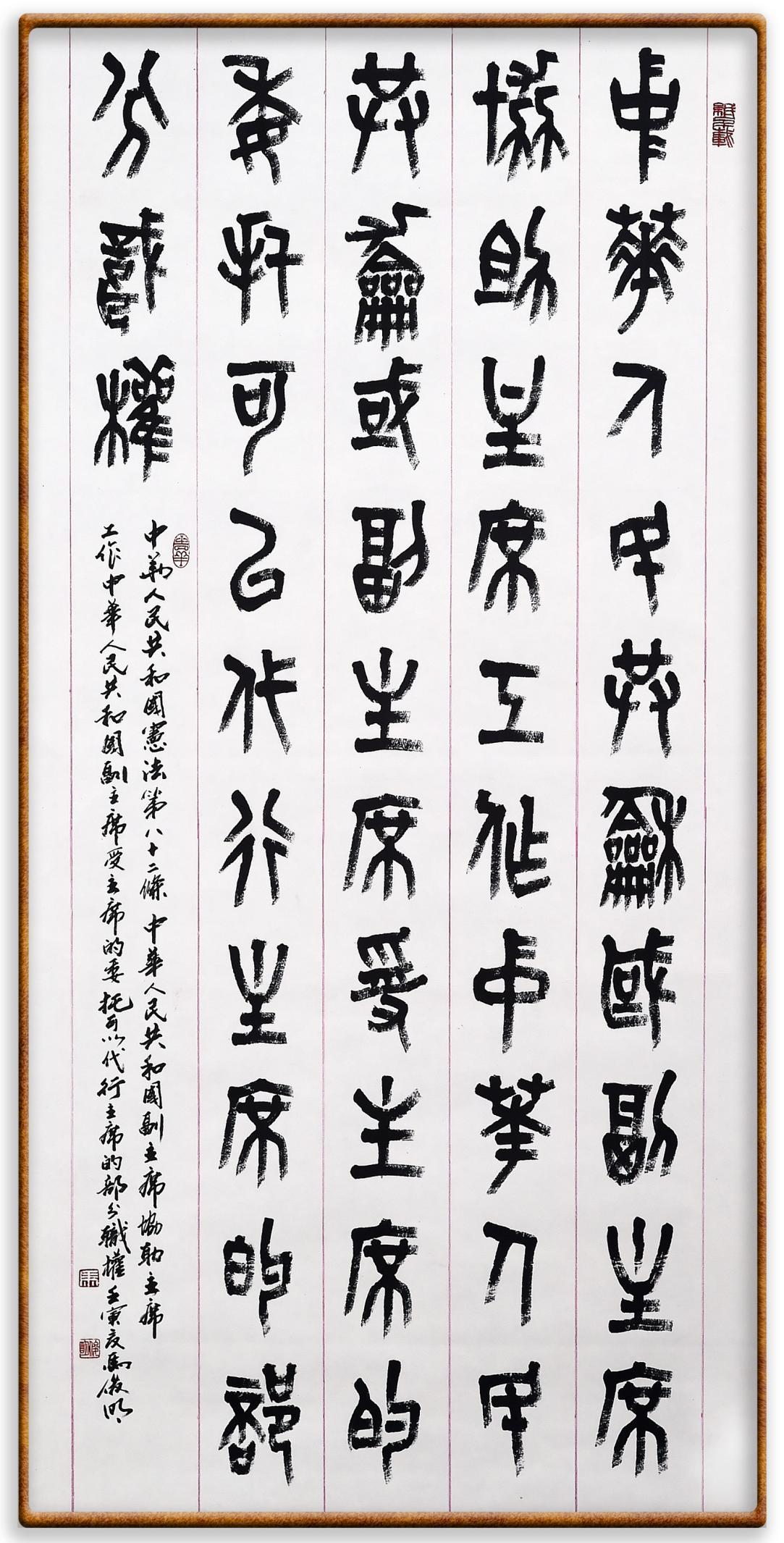繼《中華人民共和國民法典》《中華人民共和國土地管理法》《中華人民共和國土地管理法實施條例》《中華人民共和國法律援助法》之后,法治日報社聯(lián)合北京市司法局、北京書法家協(xié)會,將筆端對準(zhǔn)《中華人民共和國憲法》和《中華人民共和國行政處罰法》。