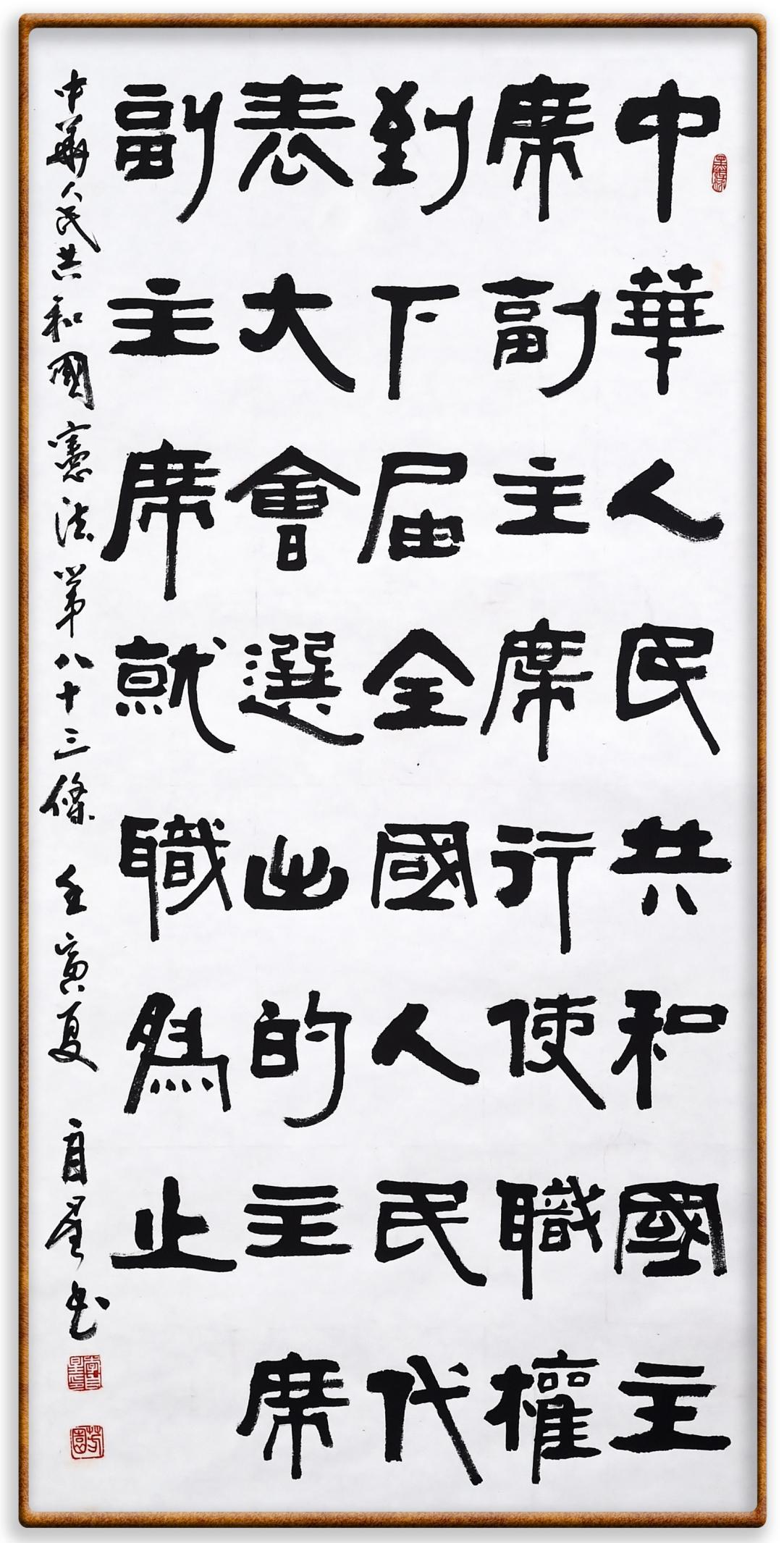 繼《中華人民共和國民法典》《中華人民共和國土地管理法》《中華人民共和國土地管理法實施條例》《中華人民共和國法律援助法》之后,法治日報社聯合北京市司法局、北京書法家協(xié)會,將筆端對準《中華人民共和國憲法》和《中華人民共和國行政處罰法》。