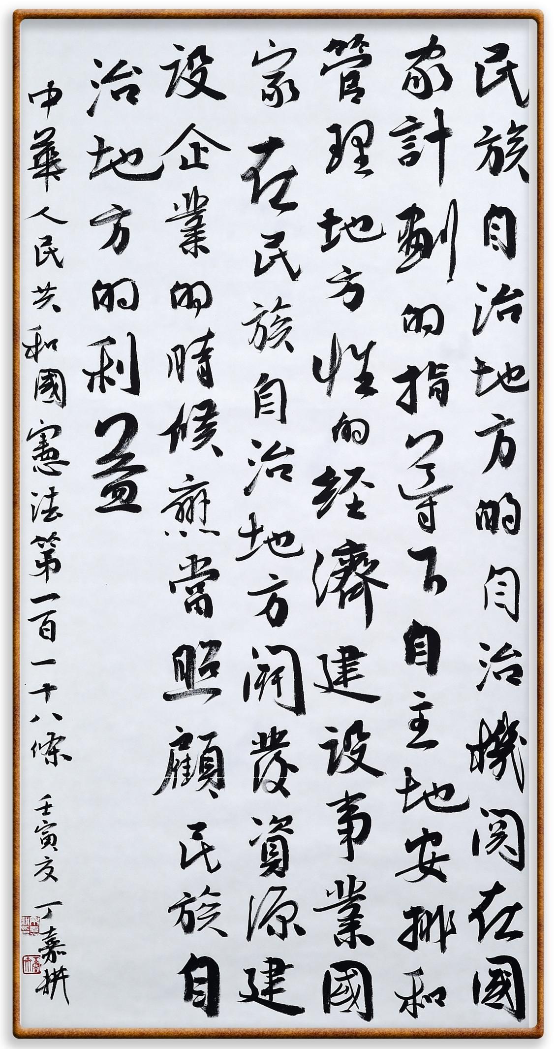 繼《中華人民共和國民法典》《中華人民共和國土地管理法》《中華人民共和國土地管理法實(shí)施條例》《中華人民共和國法律援助法》之后,法治日報社聯(lián)合北京市司法局、北京書法家協(xié)會,將筆端對準(zhǔn)《中華人民共和國憲法》和《中華人民共和國行政處罰法》。