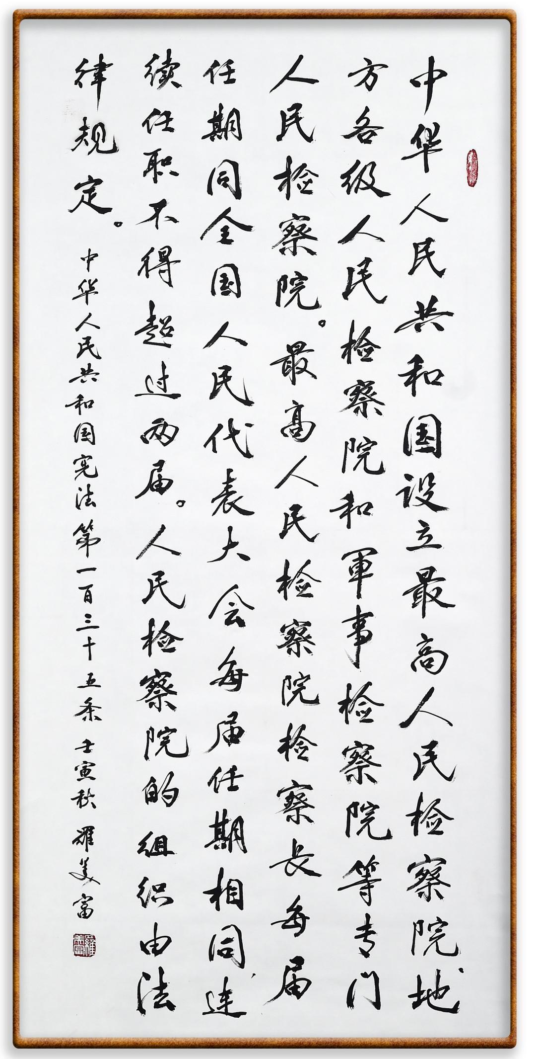 繼《中華人民共和國民法典》《中華人民共和國土地管理法》《中華人民共和國土地管理法實施條例》《中華人民共和國法律援助法》之后,法治日報社聯(lián)合北京市司法局、北京書法家協(xié)會,將筆端對準《中華人民共和國憲法》和《中華人民共和國行政處罰法》。
