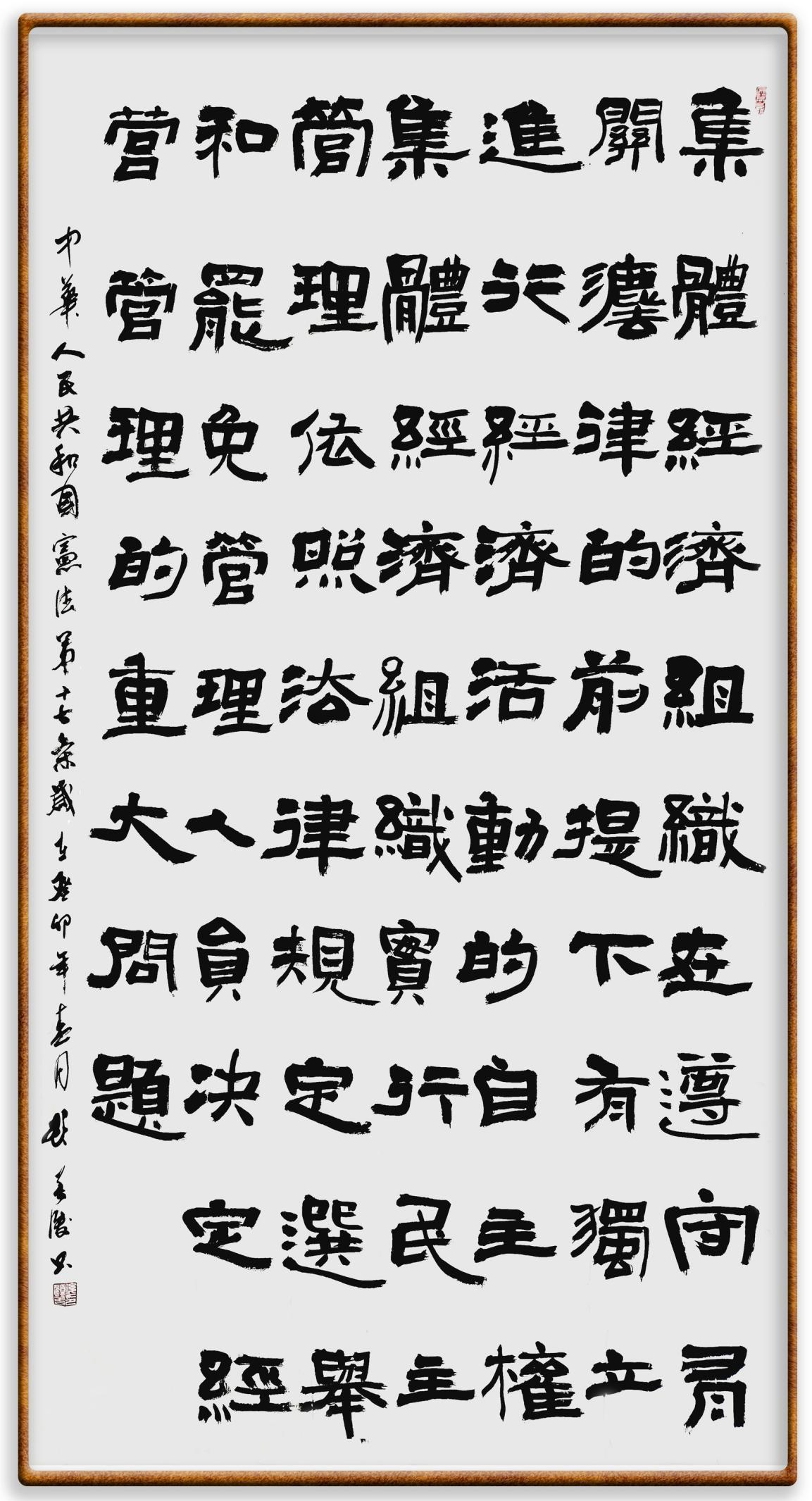 繼《中華人民共和國民法典》《中華人民共和國土地管理法》《中華人民共和國土地管理法實施條例》《中華人民共和國法律援助法》之后,法治日報社聯(lián)合北京市司法局、北京書法家協(xié)會,將筆端對準(zhǔn)《中華人民共和國憲法》和《中華人民共和國行政處罰法》。