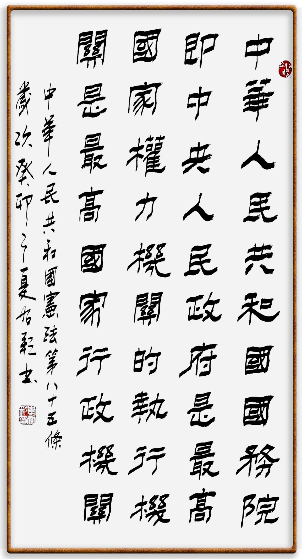 繼《中華人民共和國民法典》《中華人民共和國土地管理法》《中華人民共和國土地管理法實施條例》《中華人民共和國法律援助法》之后,法治日報社聯(lián)合北京市司法局、北京書法家協(xié)會,將筆端對準(zhǔn)《中華人民共和國憲法》和《中華人民共和國行政處罰法》。