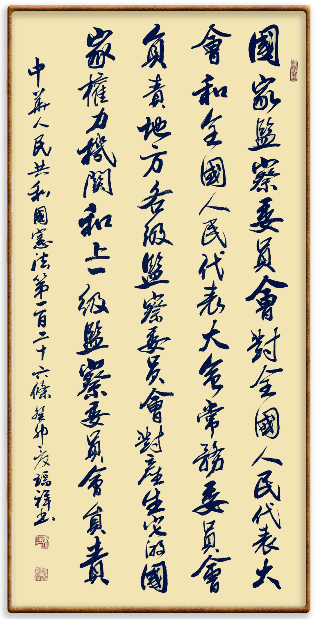 繼《中華人民共和國民法典》《中華人民共和國土地管理法》《中華人民共和國土地管理法實(shí)施條例》《中華人民共和國法律援助法》之后,法治日?qǐng)?bào)社聯(lián)合北京市司法局、北京書法家協(xié)會(huì),將筆端對(duì)準(zhǔn)《中華人民共和國憲法》和《中華人民共和國行政處罰法》。