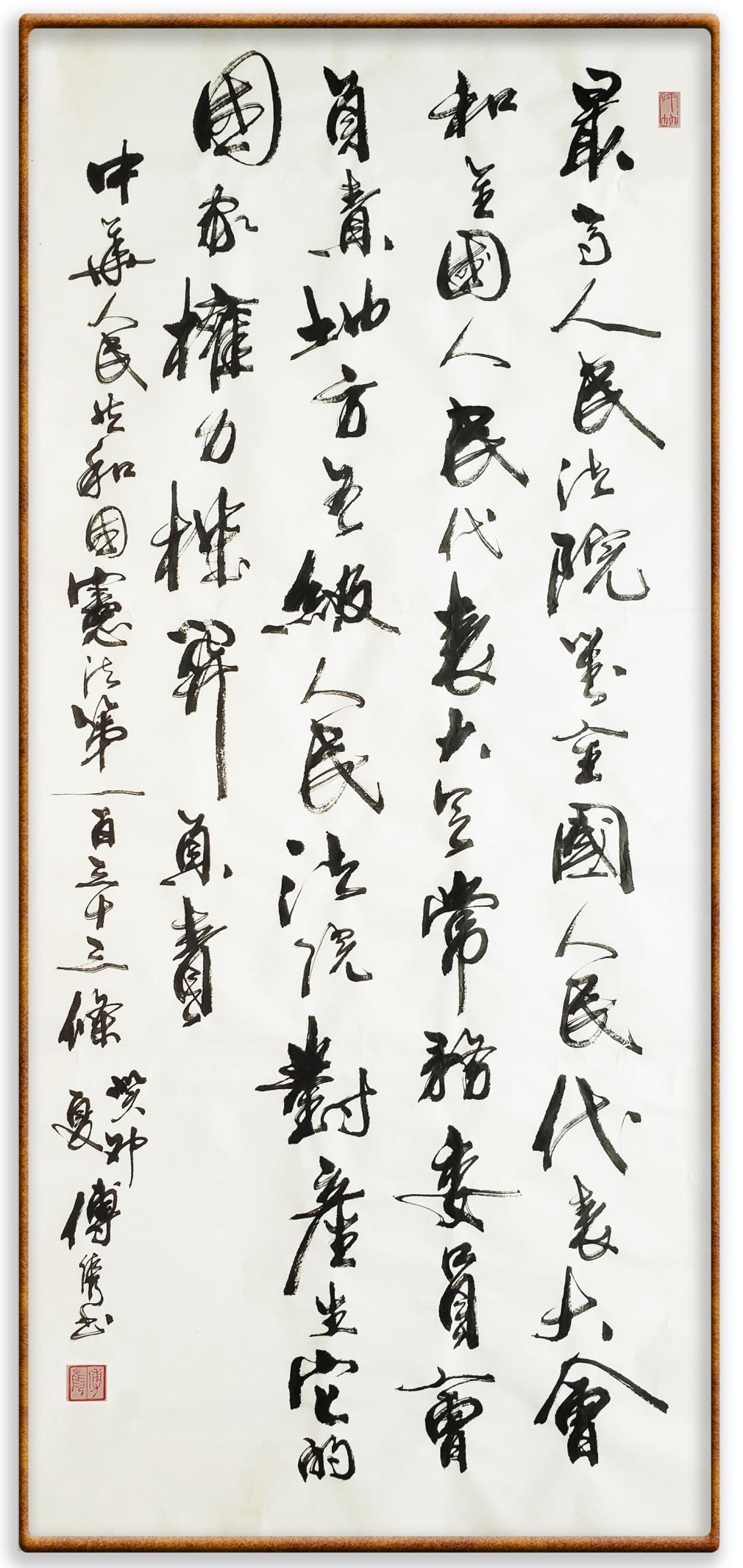繼《中華人民共和國民法典》《中華人民共和國土地管理法》《中華人民共和國土地管理法實(shí)施條例》《中華人民共和國法律援助法》之后,法治日報(bào)社聯(lián)合北京市司法局、北京書法家協(xié)會,將筆端對準(zhǔn)《中華人民共和國憲法》和《中華人民共和國行政處罰法》。