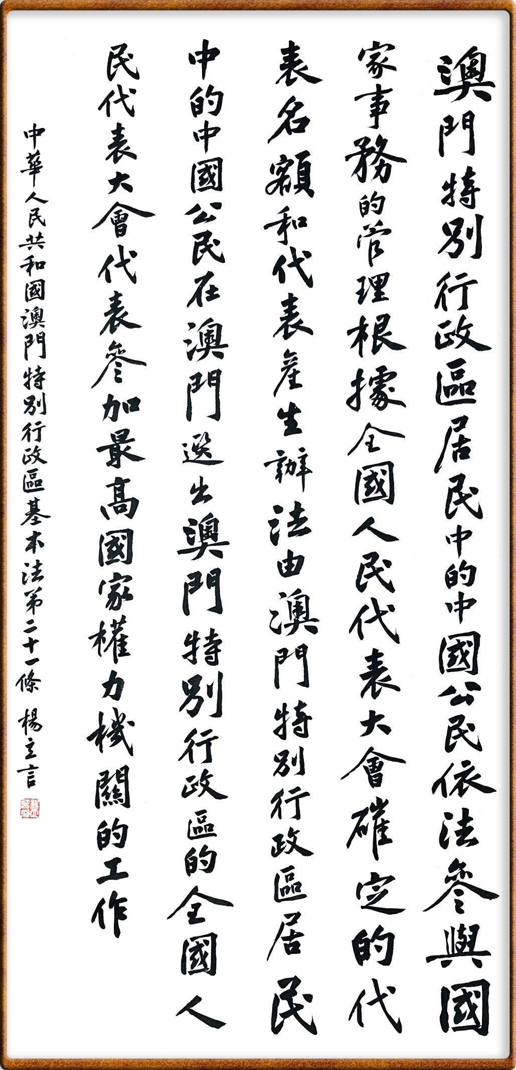 澳門基本法第二十一條 澳門特別行政區(qū)居民中的中國(guó)公民依法參與國(guó)家事務(wù)的管理。