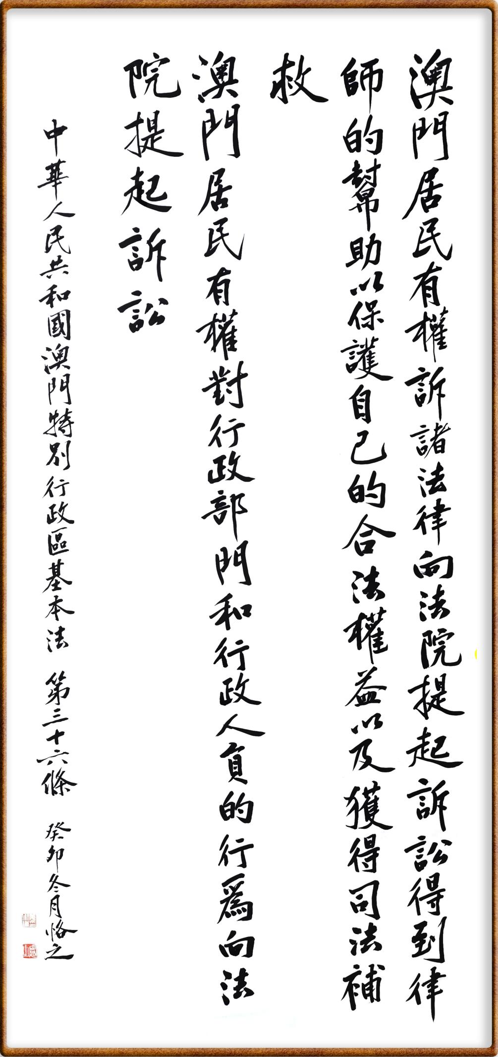澳門基本法第三十六條 澳門居民有權(quán)訴諸法律,向法院提起訴訟,得到律師的幫助以保護自己的合法權(quán)益,以及獲得司法補救。