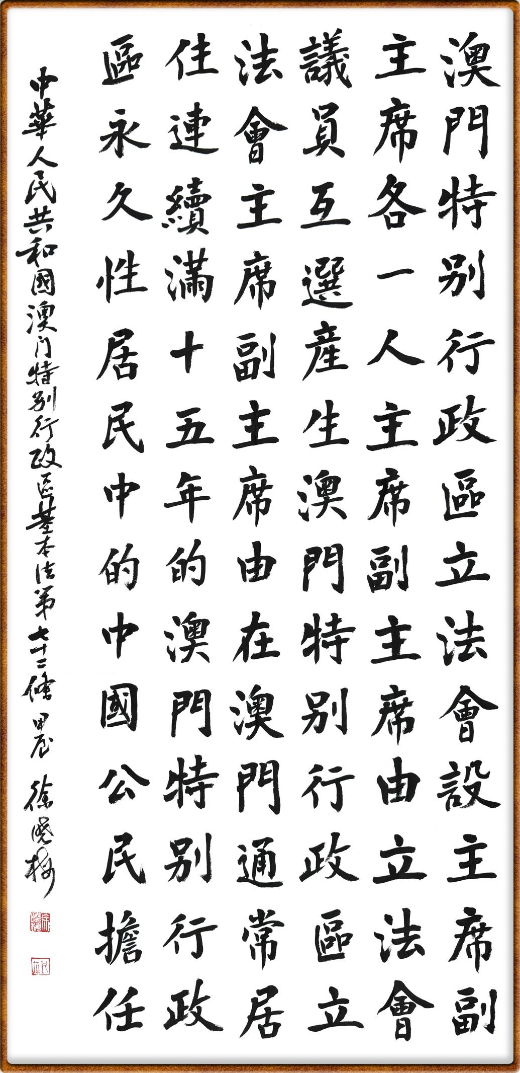 澳門特別行政區(qū)立法會(huì)主席、副主席由在澳門通常居住連續(xù)滿十五年的澳門特別行政區(qū)永久性居民中的中國(guó)公民擔(dān)任。