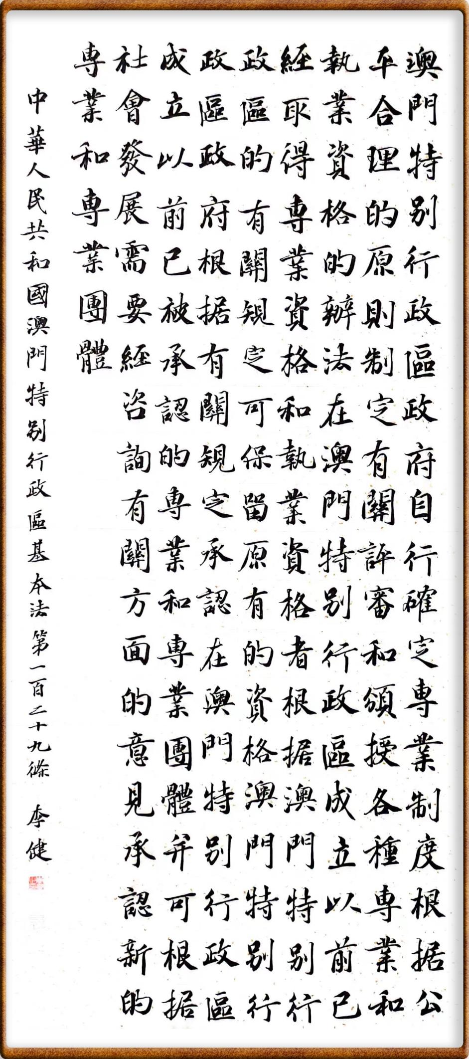書·法|李?。喊拈T基本法第一百二十九條