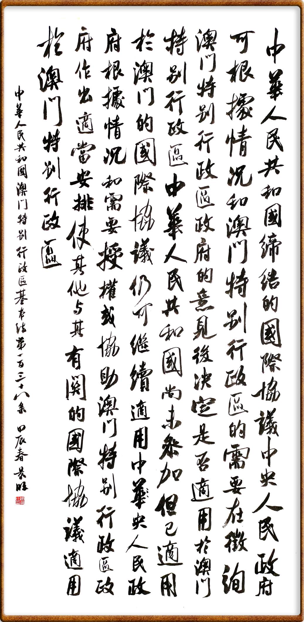澳門(mén)基本法第一百三十八條 中華人民共和國(guó)締結(jié)的國(guó)際協(xié)議,中央人民政府可根據(jù)情況和澳門(mén)特別行政區(qū)的需要,在征詢澳門(mén)特別行政區(qū)政府的意見(jiàn)后,決定是否適用于澳門(mén)特別行政區(qū)。