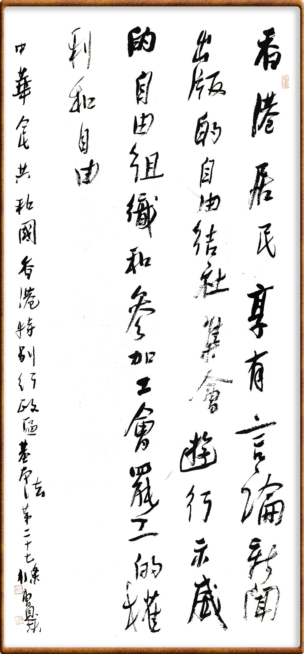 香港基本法第二十七條 香港居民享有言論、新聞、出版的自由,結(jié)社、集會、游行、示威的自由,組織和參加工會、罷工的權(quán)利和自由。