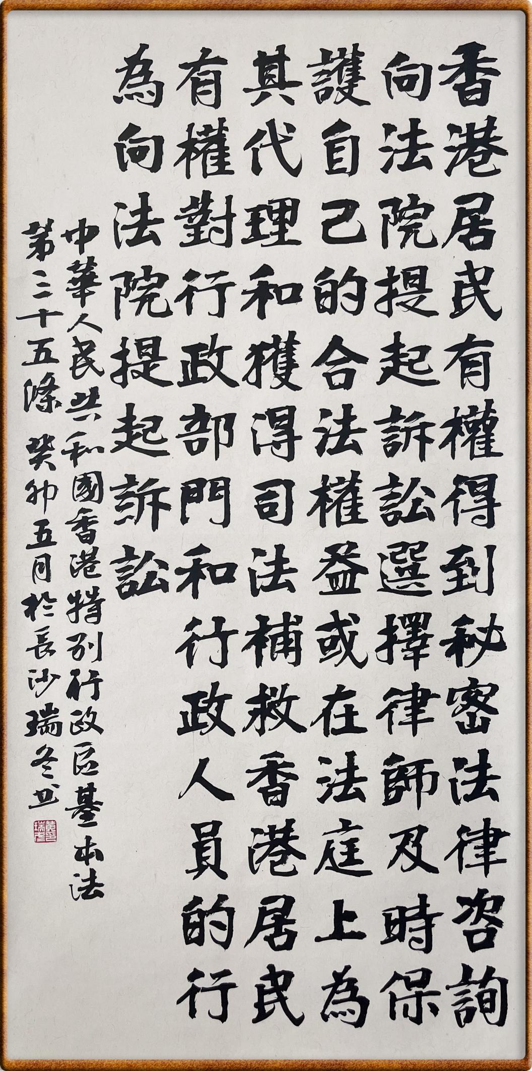 香港基本法第三十五條 香港居民有權(quán)得到秘密法律咨詢、向法院提起訴訟、選擇律師及時(shí)保護(hù)自己的合法權(quán)益或在法庭上為其代理和獲得司法補(bǔ)救。