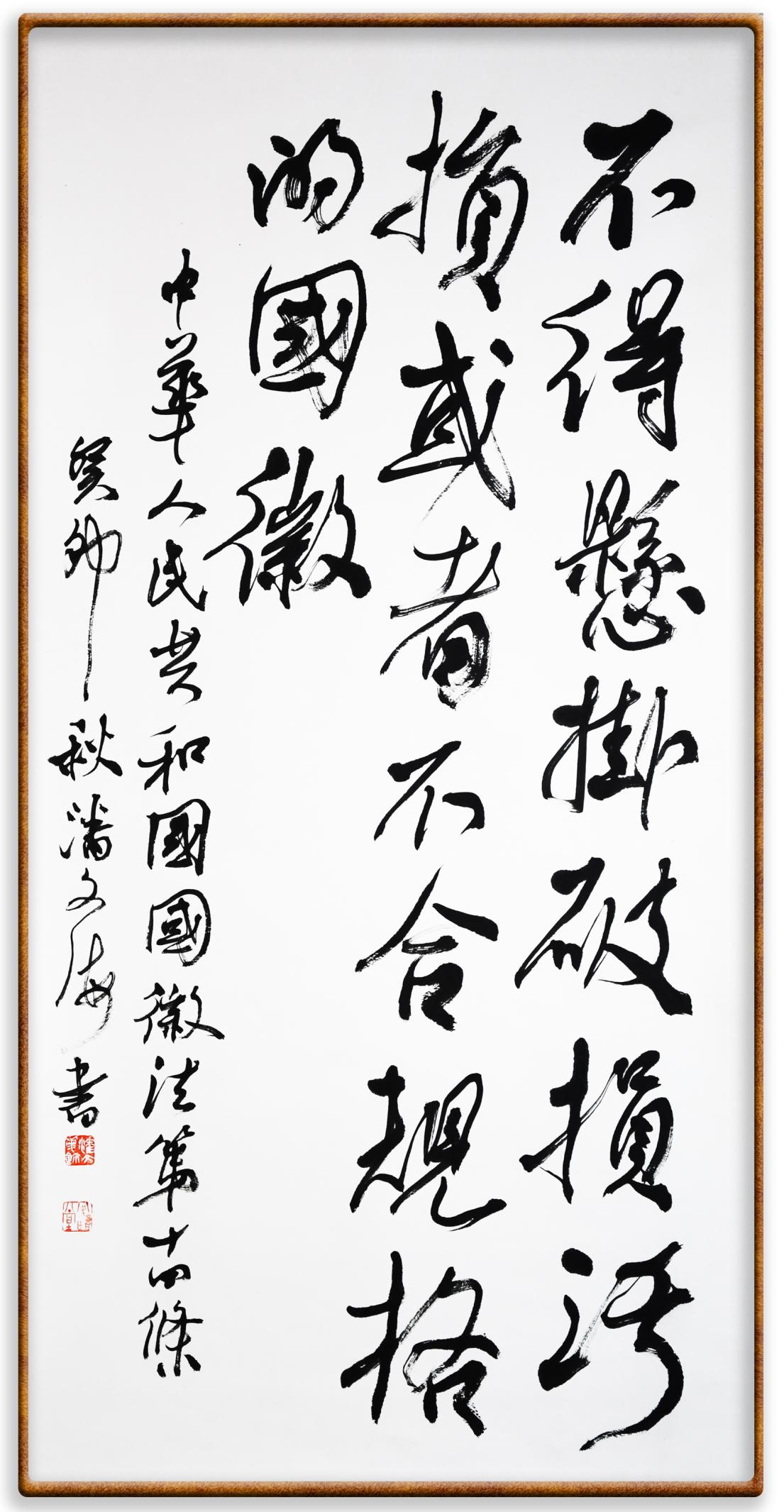國(guó)徽法第十四條 不得懸掛破損、污損或者不合規(guī)格的國(guó)徽。