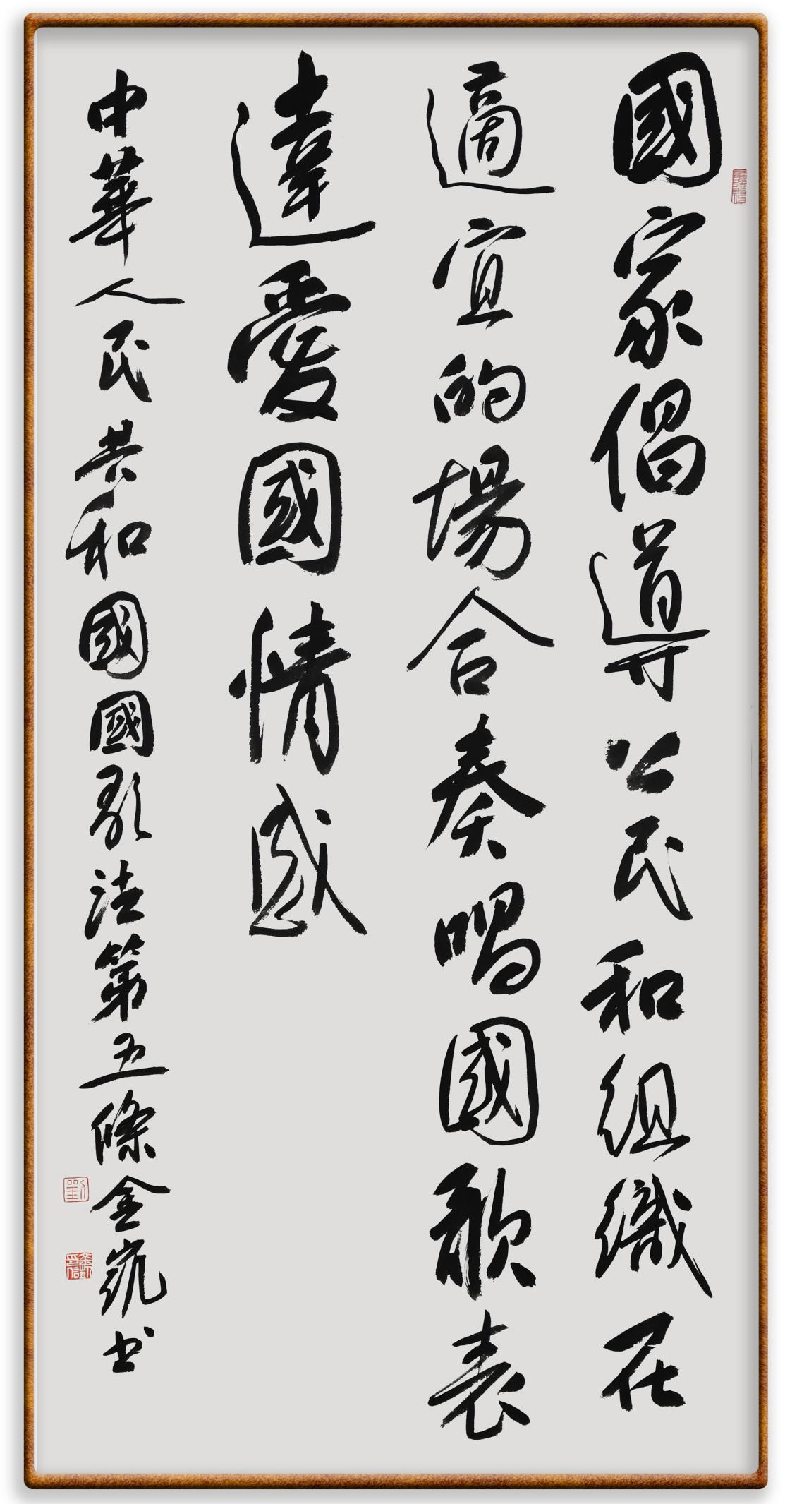 國(guó)歌法第五條 國(guó)家倡導(dǎo)公民和組織在適宜的場(chǎng)合奏唱國(guó)歌,表達(dá)愛(ài)國(guó)情感。