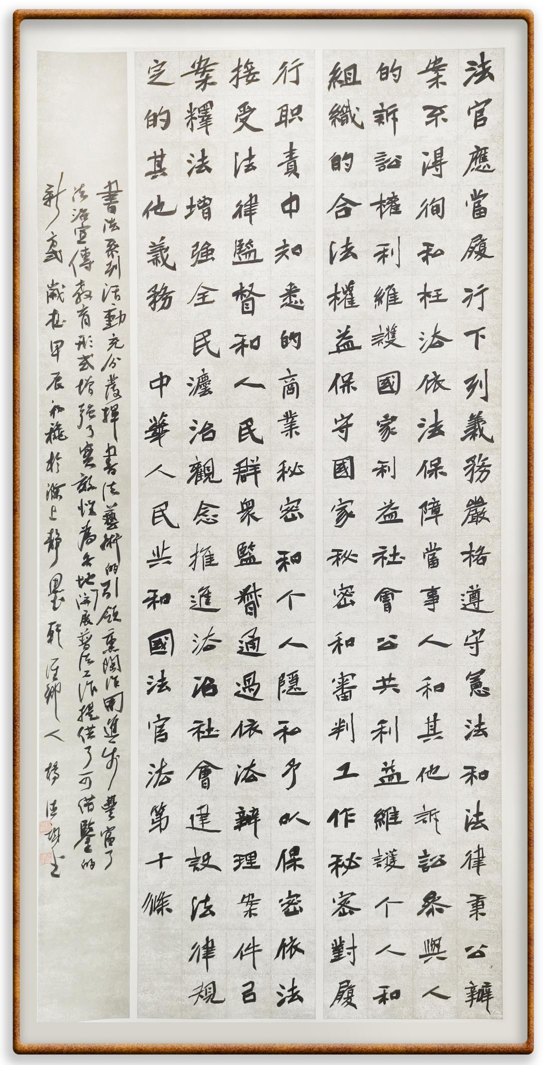 “書·法”活動旨在為創(chuàng)新法治宣傳教育,多開一點腦洞、多花一點心思、多出一點力量、多做一點貢獻,引領和推動更多的人拿起筆來學法、寫法,在不斷“書·法”過程中,提升自身的法治素養(yǎng),在全社會弘揚法治精神。
