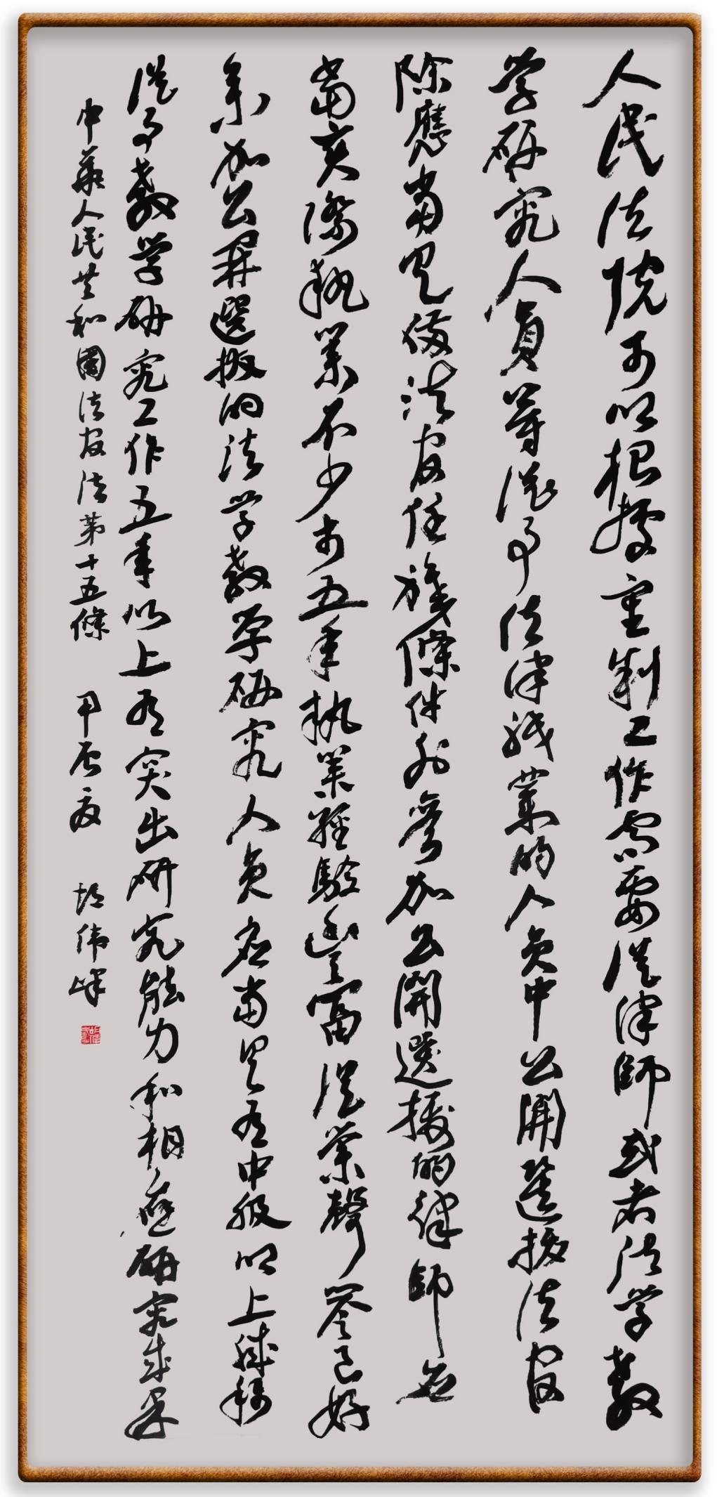 胡偉峰,福建省廈門市書法家協(xié)會會員,廈門海事法院審判員,四級高級法官。