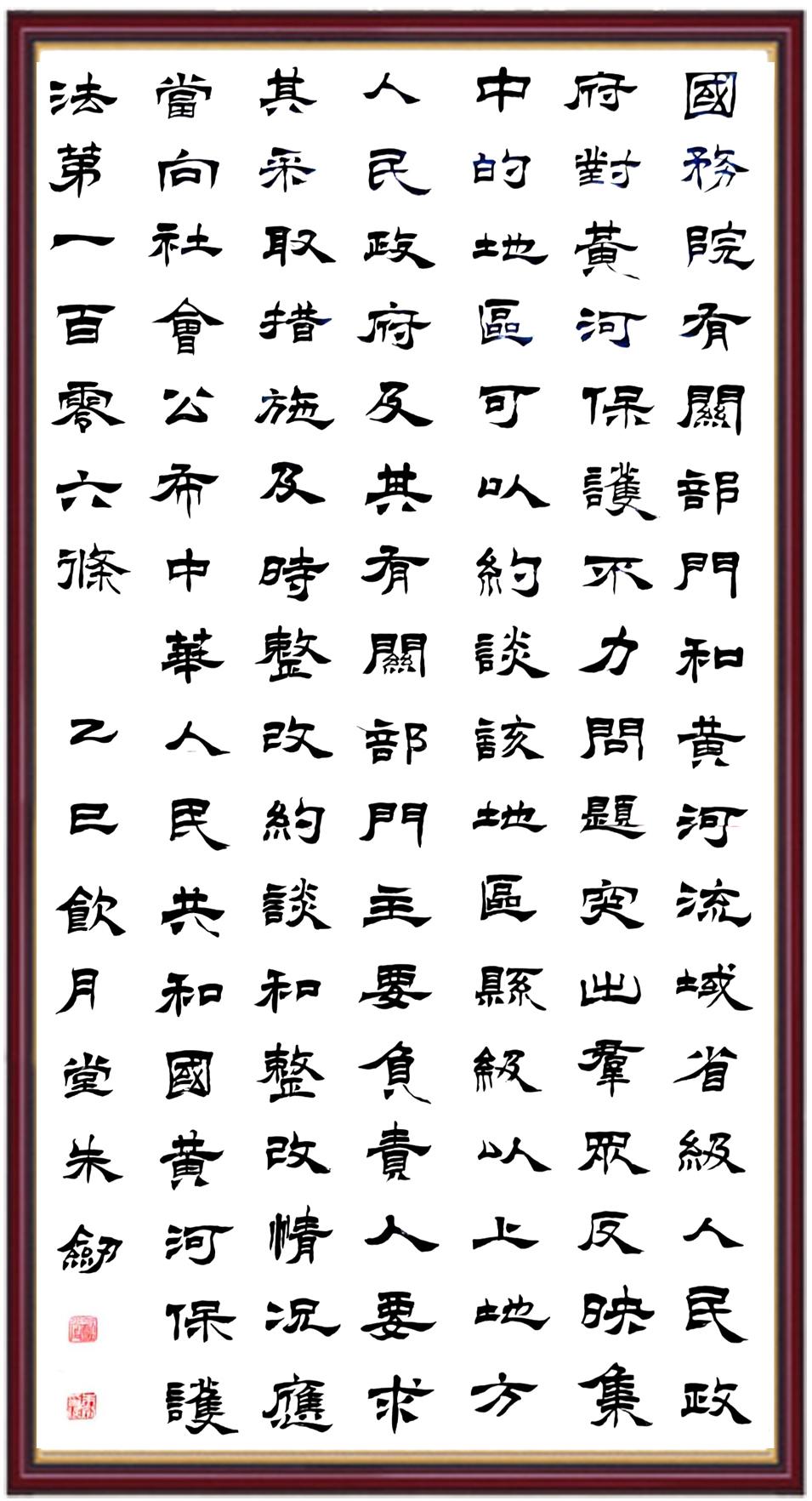 黃河寧,天下平。黃河是中華民族的發(fā)源地和搖籃,保護黃河是事關(guān)中華民族偉大復(fù)興的千秋大計。《中華人民共和國黃河保護法》為推進水資源節(jié)約集約利用、保護傳承弘揚黃河文化、推動黃河流域生態(tài)保護和高質(zhì)量發(fā)展提供了有力法治保障。繼書寫《中華人民共和國民法典》《中華人民共和國憲法》《中華人民共和國澳門特別行政區(qū)基本法》《中華人民共和國香港特別行政區(qū)基本法》《中華人民共和國國旗法》《中華人民共和國國徽法》《中華人民共和國國歌法》《中華人民共和國法官法》等法律法規(guī)之后,法制日報社聯(lián)合沿黃九?。▍^(qū))司法廳、書法家協(xié)會,將筆端對準《中華人民共和國黃河保護法》。