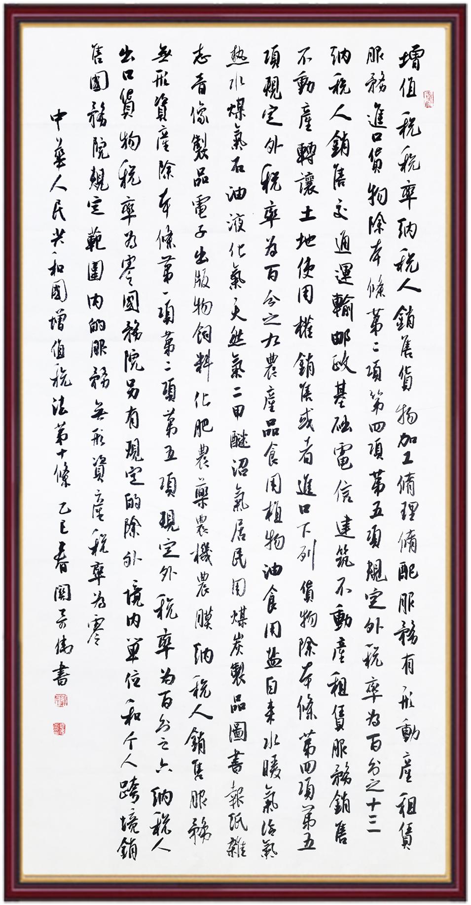 稅收一頭連著國計,一頭連著民生。全面推進依法治稅,是全面依法治國基本方略在稅收領(lǐng)域的集中體現(xiàn)?!吨腥A人民共和國增值稅法》將于2026年1月1日起施行,對全面落實稅收法定原則、健全有利于高質(zhì)量發(fā)展的增值稅制度、規(guī)范增值稅的征收和繳納、保護納稅人合法權(quán)益具有重要意義。繼書寫《中華人民共和國民法典》《中華人民共和國憲法》《中華人民共和國國旗法》《中華人民共和國國徽法》《中華人民共和國國歌法》《中華人民共和國法官法》《中華人民共和國黃河保護法》等法律法規(guī)之后,法制日報社將筆端對準《中華人民共和國增值稅法》。