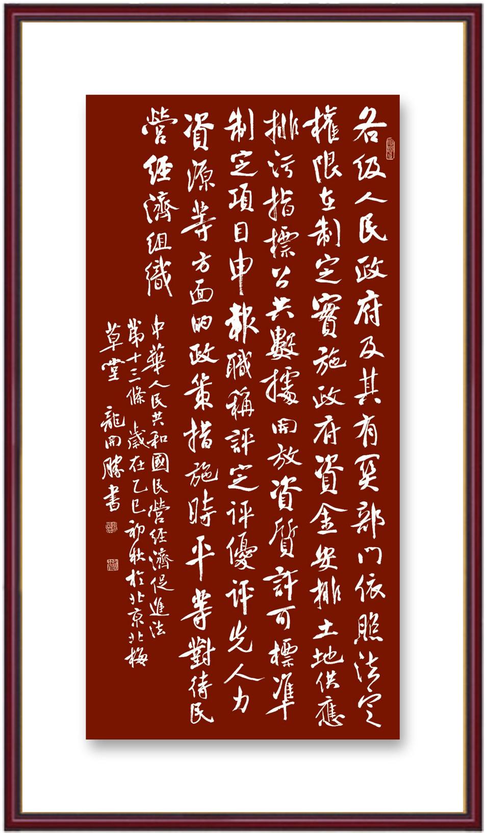 《中華人民共和國民營經(jīng)濟(jì)促進(jìn)法》自今年5月20日起施行。作為我國首部專門關(guān)于民營經(jīng)濟(jì)發(fā)展的基礎(chǔ)性法律,民營經(jīng)濟(jì)促進(jìn)法將支持和保障民營經(jīng)濟(jì)發(fā)展的法律制度融入中國特色社會(huì)主義法律體系,具有重大的法治意義,為促進(jìn)民營經(jīng)濟(jì)持續(xù)、健康、高質(zhì)量發(fā)展提供了堅(jiān)實(shí)的法治保障。為更好地學(xué)習(xí)、宣傳、貫徹這部法律,法治日?qǐng)?bào)社聯(lián)合司法部普法與依法治理局,開展“‘書·法’系列活動(dòng)之書寫《中華人民共和國民營經(jīng)濟(jì)促進(jìn)法》”活動(dòng)。