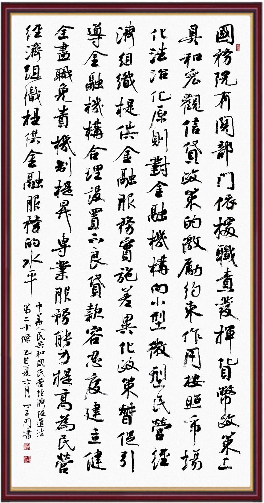 2020年7月11日,由法治日報社主辦、法報文化傳媒(北京)有限公司和北京千音文化傳媒有限公司聯(lián)合承辦的“書·法”系列活動正式啟動?!皶しā被顒又荚跒閯?chuàng)新法治宣傳教育,多開一點腦洞、多花一點心思、多出一點力量、多作一點貢獻,引領(lǐng)和推動更多的人拿起筆來學(xué)法、寫法,在不斷“書·法”過程中,提升自身的法治素養(yǎng),在全社會弘揚法治精神。先后書寫《中華人民共和國民法典》《中華人民共和國憲法》《中華人民共和國澳門特別行政區(qū)基本法》《中華人民共和國香港特別行政區(qū)基本法》《中華人民共和國國旗法》《中華人民共和國國徽法》《中華人民共和國國歌法》《中華人民共和國法官法》《中華人民共和國黃河保護法》等19部法律法規(guī)。