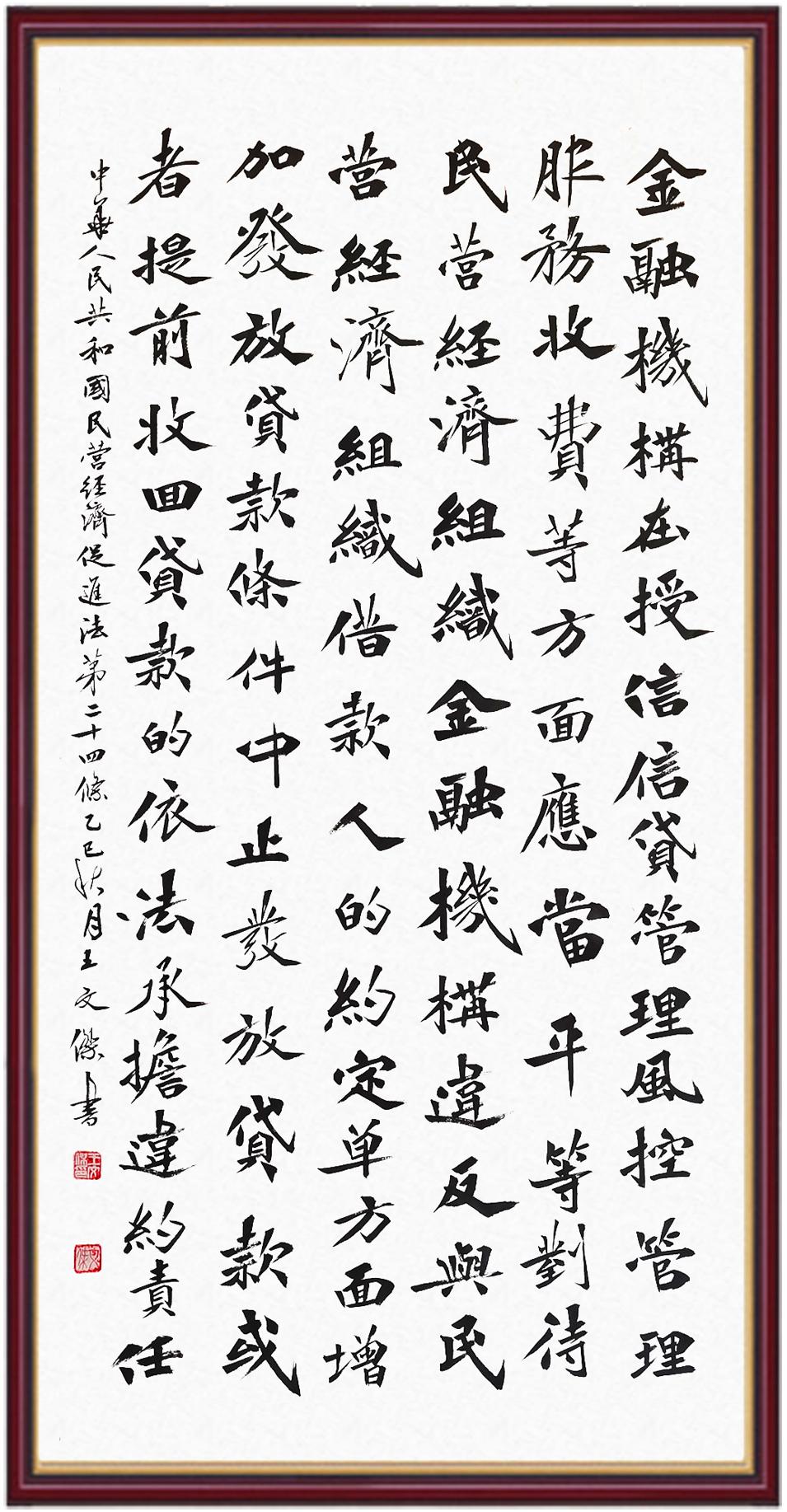 《中華人民共和國民營經(jīng)濟(jì)促進(jìn)法》自今年5月20日起施行。作為我國首部專門關(guān)于民營經(jīng)濟(jì)發(fā)展的基礎(chǔ)性法律,民營經(jīng)濟(jì)促進(jìn)法將支持和保障民營經(jīng)濟(jì)發(fā)展的法律制度融入中國特色社會(huì)主義法律體系,具有重大的法治意義,為促進(jìn)民營經(jīng)濟(jì)持續(xù)、健康、高質(zhì)量發(fā)展提供了堅(jiān)實(shí)的法治保障。為更好地學(xué)習(xí)、宣傳、貫徹這部法律,法治日?qǐng)?bào)社聯(lián)合司法部普法與依法治理局,開展“‘書·法’系列活動(dòng)之書寫《中華人民共和國民營經(jīng)濟(jì)促進(jìn)法》”活動(dòng)。