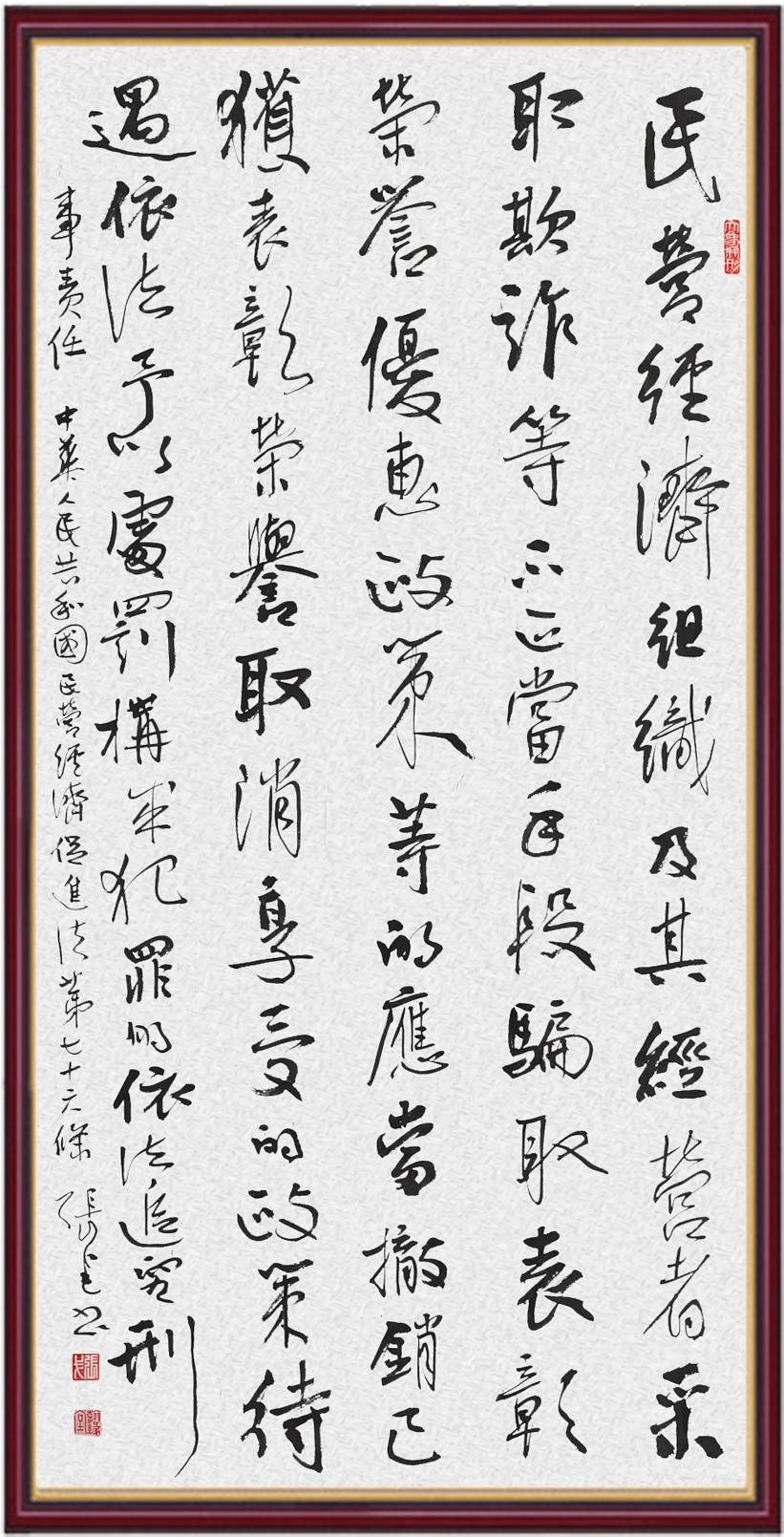 《中華人民共和國民營經(jīng)濟(jì)促進(jìn)法》自今年5月20日起施行。作為我國首部專門關(guān)于民營經(jīng)濟(jì)發(fā)展的基礎(chǔ)性法律,民營經(jīng)濟(jì)促進(jìn)法將支持和保障民營經(jīng)濟(jì)發(fā)展的法律制度融入中國特色社會主義法律體系,具有重大的法治意義,為促進(jìn)民營經(jīng)濟(jì)持續(xù)、健康、高質(zhì)量發(fā)展提供了堅實的法治保障。為更好地學(xué)習(xí)、宣傳、貫徹這部法律,法治日報社聯(lián)合司法部普法與依法治理局,開展“‘書·法’系列活動之書寫《中華人民共和國民營經(jīng)濟(jì)促進(jìn)法》”活動。
