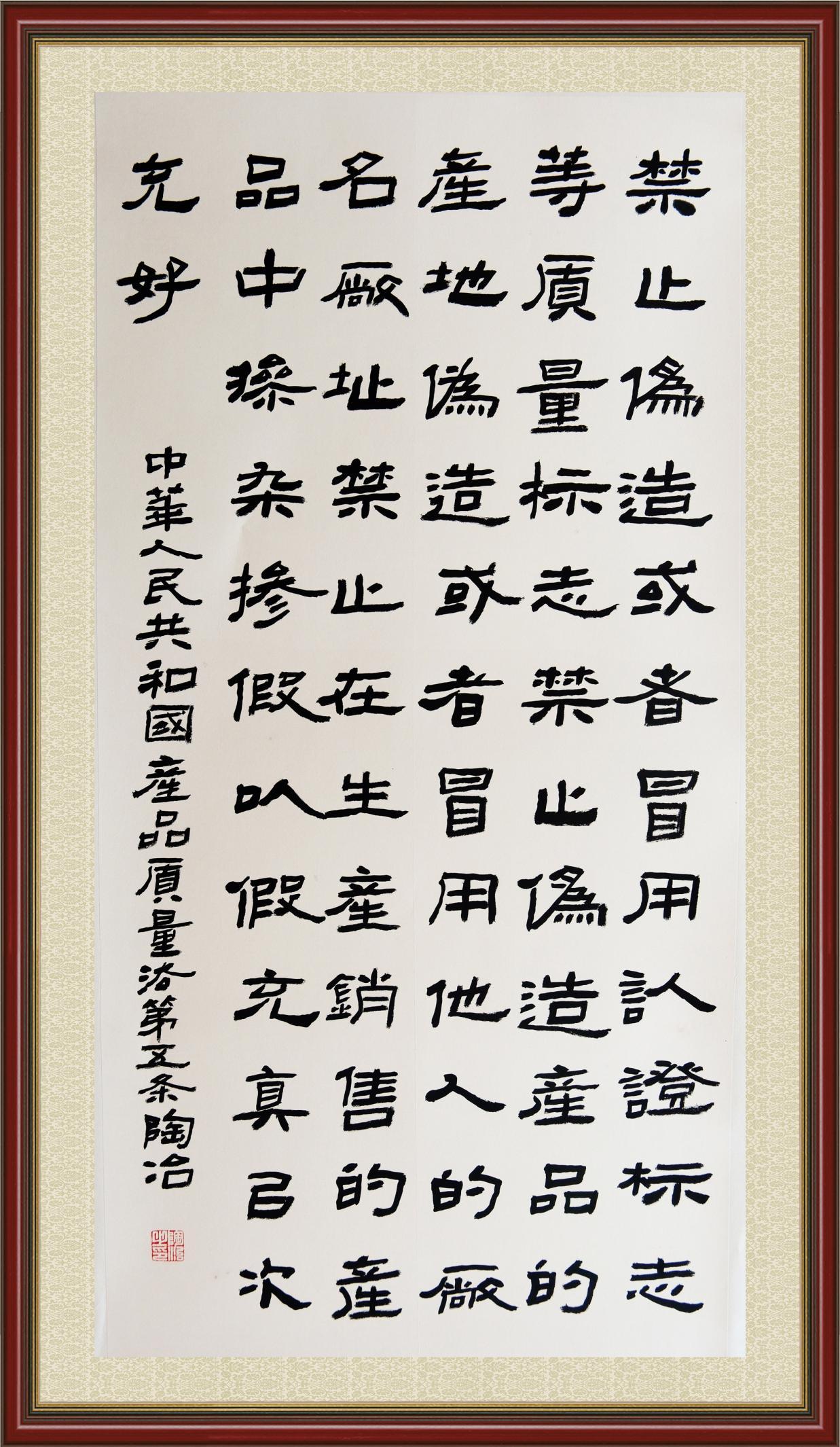 《中華人民共和國產(chǎn)品質(zhì)量法》自1993年9月1日起開始施行,先后進行三次修正。作為產(chǎn)品質(zhì)量領(lǐng)域的基本法律,產(chǎn)品質(zhì)量法對規(guī)范產(chǎn)品質(zhì)量管理、維護消費者合法權(quán)益、促進經(jīng)濟社會發(fā)展具有重要意義。為更好地學(xué)習(xí)、宣傳、貫徹這部法律,在國家市場監(jiān)督管理總局法規(guī)司的支持下,法治日報社開展了“‘書·法’系列活動之書寫《中華人民共和國產(chǎn)品質(zhì)量法》”活動。