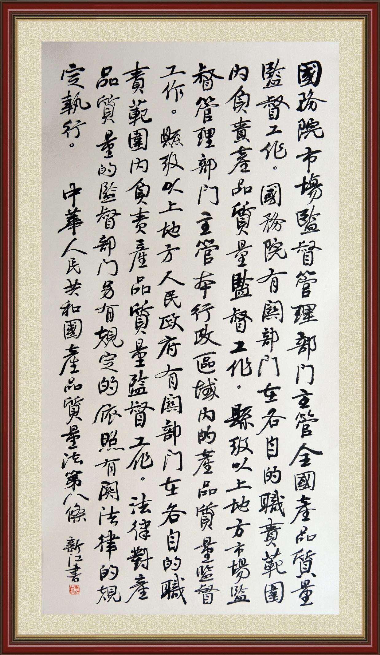 《中華人民共和國產(chǎn)品質(zhì)量法》自1993年9月1日起開始施行,先后進(jìn)行三次修正。作為產(chǎn)品質(zhì)量領(lǐng)域的基本法律,產(chǎn)品質(zhì)量法對規(guī)范產(chǎn)品質(zhì)量管理、維護(hù)消費(fèi)者合法權(quán)益、促進(jìn)經(jīng)濟(jì)社會發(fā)展具有重要意義。為更好地學(xué)習(xí)、宣傳、貫徹這部法律,在國家市場監(jiān)督管理總局法規(guī)司的支持下,法治日報(bào)社開展了“‘書·法’系列活動之書寫《中華人民共和國產(chǎn)品質(zhì)量法》”活動。