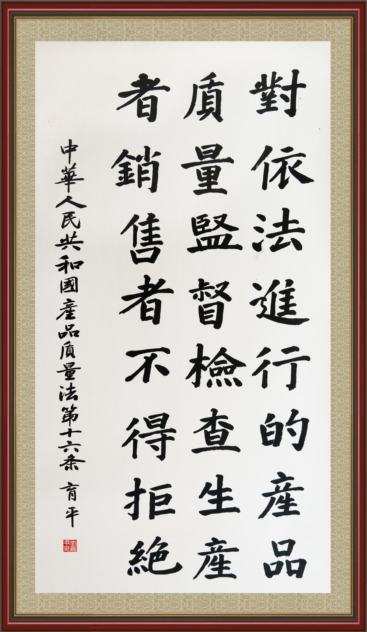 《中華人民共和國產(chǎn)品質(zhì)量法》自1993年9月1日起開始施行,先后進行三次修正。作為產(chǎn)品質(zhì)量領(lǐng)域的基本法律,產(chǎn)品質(zhì)量法對規(guī)范產(chǎn)品質(zhì)量管理、維護消費者合法權(quán)益、促進經(jīng)濟社會發(fā)展具有重要意義。為更好地學(xué)習(xí)、宣傳、貫徹這部法律,在國家市場監(jiān)督管理總局法規(guī)司的支持下,法治日報社開展了“‘書·法’系列活動之書寫《中華人民共和國產(chǎn)品質(zhì)量法》”活動。