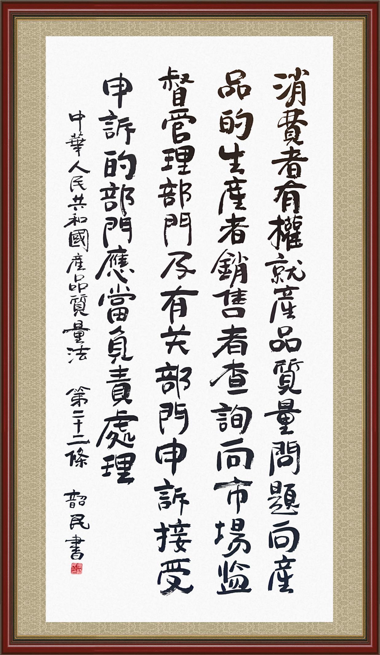 《中華人民共和國產(chǎn)品質(zhì)量法》自1993年9月1日起開始施行,先后進(jìn)行三次修正。作為產(chǎn)品質(zhì)量領(lǐng)域的基本法律,產(chǎn)品質(zhì)量法對(duì)規(guī)范產(chǎn)品質(zhì)量管理、維護(hù)消費(fèi)者合法權(quán)益、促進(jìn)經(jīng)濟(jì)社會(huì)發(fā)展具有重要意義。為更好地學(xué)習(xí)、宣傳、貫徹這部法律,在國家市場監(jiān)督管理總局法規(guī)司的支持下,法治日?qǐng)?bào)社開展了“‘書·法’系列活動(dòng)之書寫《中華人民共和國產(chǎn)品質(zhì)量法》”活動(dòng)。