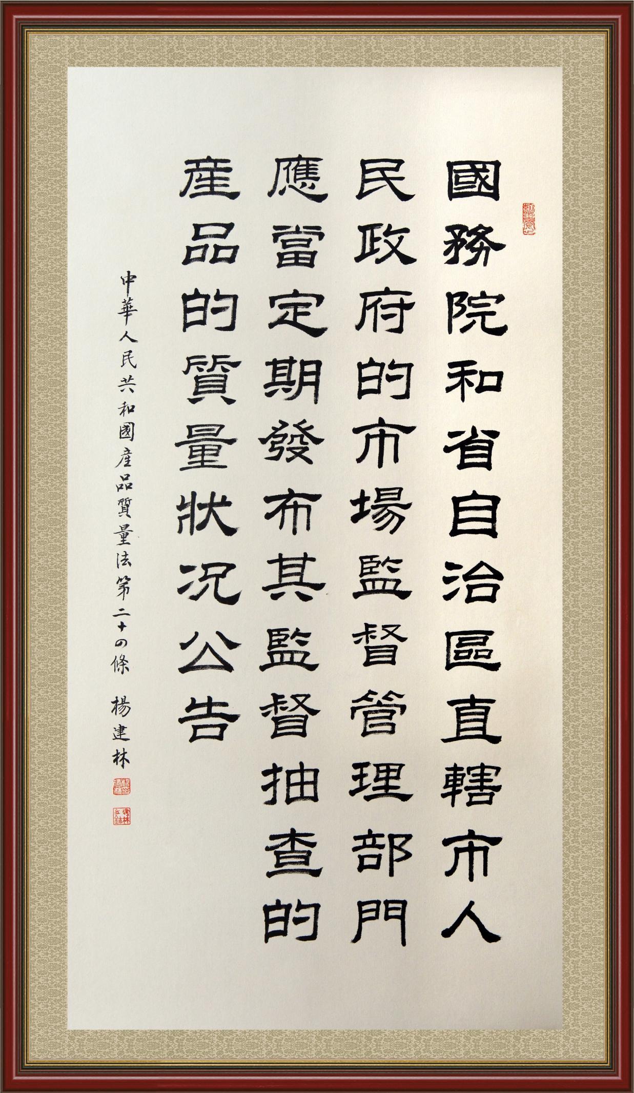 《中華人民共和國(guó)產(chǎn)品質(zhì)量法》自1993年9月1日起開始施行,先后進(jìn)行三次修正。作為產(chǎn)品質(zhì)量領(lǐng)域的基本法律,產(chǎn)品質(zhì)量法對(duì)規(guī)范產(chǎn)品質(zhì)量管理、維護(hù)消費(fèi)者合法權(quán)益、促進(jìn)經(jīng)濟(jì)社會(huì)發(fā)展具有重要意義。為更好地學(xué)習(xí)、宣傳、貫徹這部法律,在國(guó)家市場(chǎng)監(jiān)督管理總局法規(guī)司的支持下,法治日?qǐng)?bào)社開展了“‘書·法’系列活動(dòng)之書寫《中華人民共和國(guó)產(chǎn)品質(zhì)量法》”活動(dòng)。