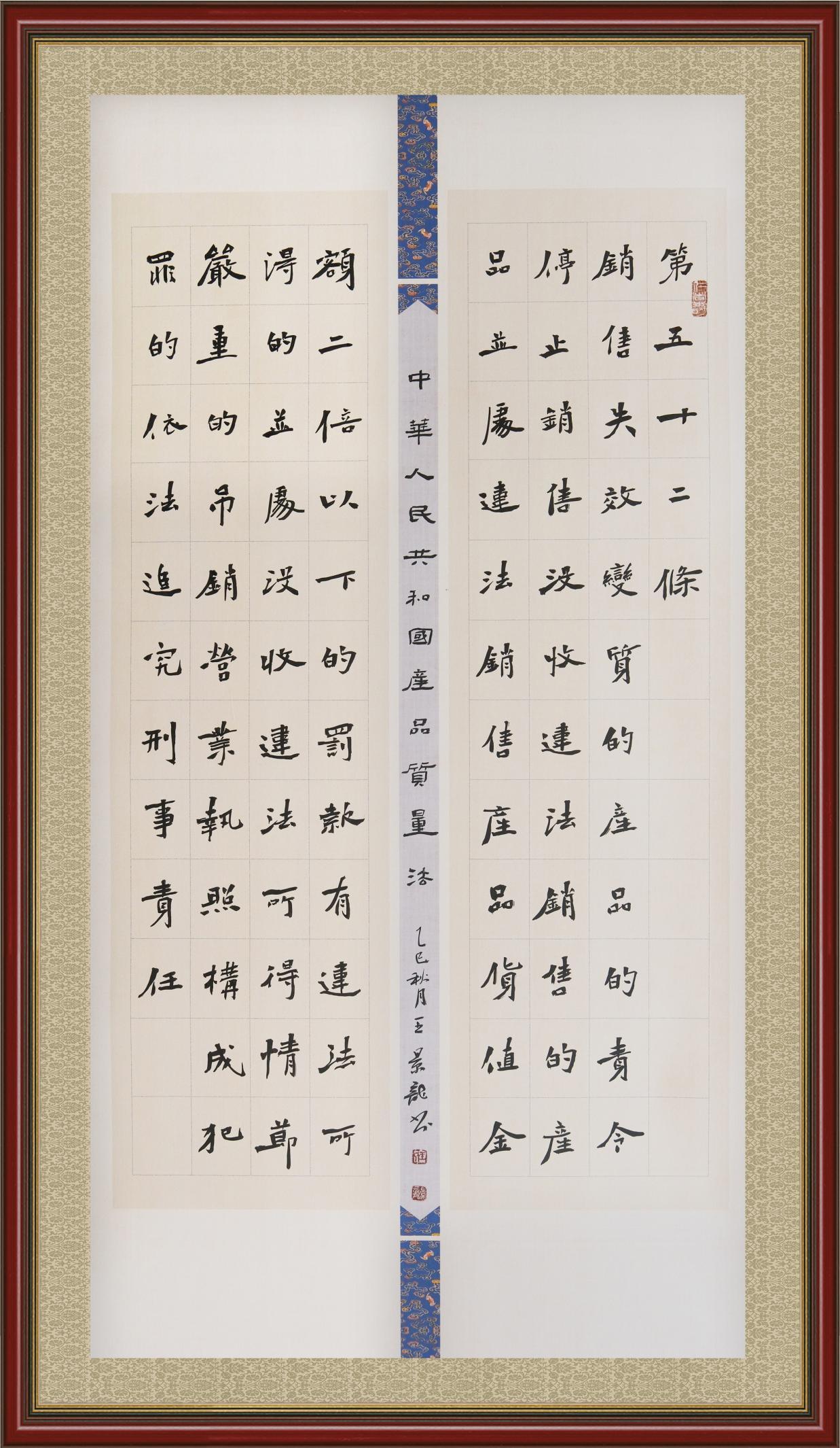 《中華人民共和國(guó)產(chǎn)品質(zhì)量法》自1993年9月1日起開(kāi)始施行,先后進(jìn)行三次修正。作為產(chǎn)品質(zhì)量領(lǐng)域的基本法律,產(chǎn)品質(zhì)量法對(duì)規(guī)范產(chǎn)品質(zhì)量管理、維護(hù)消費(fèi)者合法權(quán)益、促進(jìn)經(jīng)濟(jì)社會(huì)發(fā)展具有重要意義。為更好地學(xué)習(xí)、宣傳、貫徹這部法律,在國(guó)家市場(chǎng)監(jiān)督管理總局法規(guī)司的支持下,法治日?qǐng)?bào)社開(kāi)展了“‘書(shū)·法’系列活動(dòng)之書(shū)寫《中華人民共和國(guó)產(chǎn)品質(zhì)量法》”活動(dòng)。