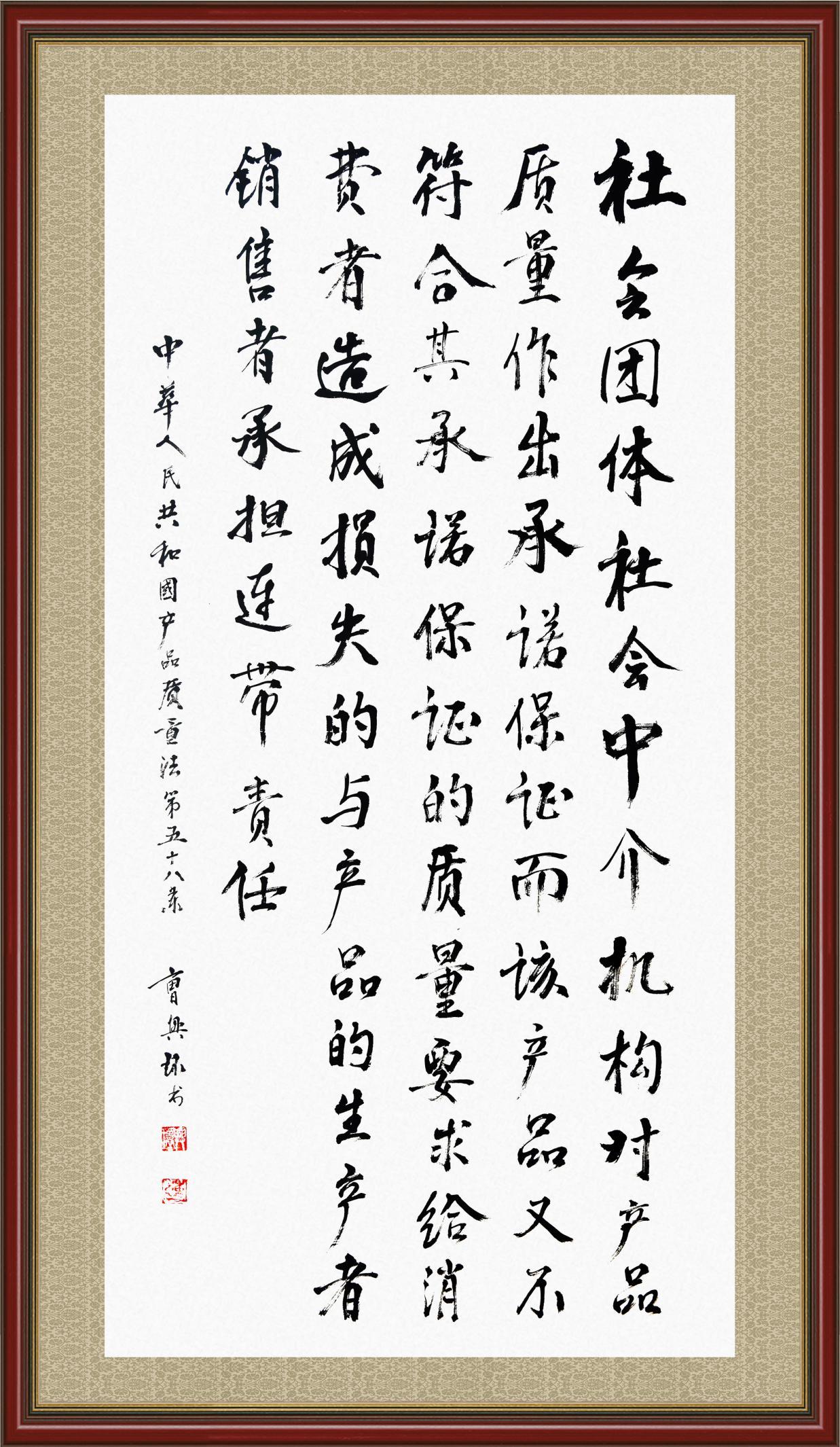《中華人民共和國產(chǎn)品質(zhì)量法》自1993年9月1日起開始施行,先后進行三次修正。作為產(chǎn)品質(zhì)量領(lǐng)域的基本法律,產(chǎn)品質(zhì)量法對規(guī)范產(chǎn)品質(zhì)量管理、維護消費者合法權(quán)益、促進經(jīng)濟社會發(fā)展具有重要意義。為更好地學習、宣傳、貫徹這部法律,在國家市場監(jiān)督管理總局法規(guī)司的支持下,法治日報社開展了“‘書·法’系列活動之書寫《中華人民共和國產(chǎn)品質(zhì)量法》”活動。