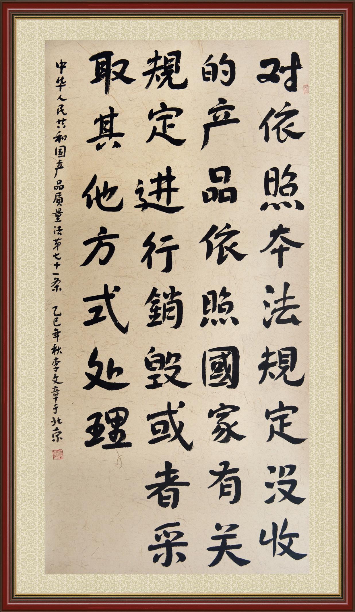 《中華人民共和國(guó)產(chǎn)品質(zhì)量法》自1993年9月1日起開(kāi)始施行,先后進(jìn)行三次修正。作為產(chǎn)品質(zhì)量領(lǐng)域的基本法律,產(chǎn)品質(zhì)量法對(duì)規(guī)范產(chǎn)品質(zhì)量管理、維護(hù)消費(fèi)者合法權(quán)益、促進(jìn)經(jīng)濟(jì)社會(huì)發(fā)展具有重要意義。為更好地學(xué)習(xí)、宣傳、貫徹這部法律,在國(guó)家市場(chǎng)監(jiān)督管理總局法規(guī)司的支持下,法治日?qǐng)?bào)社開(kāi)展了“‘書(shū)·法’系列活動(dòng)之書(shū)寫(xiě)《中華人民共和國(guó)產(chǎn)品質(zhì)量法》”活動(dòng)。