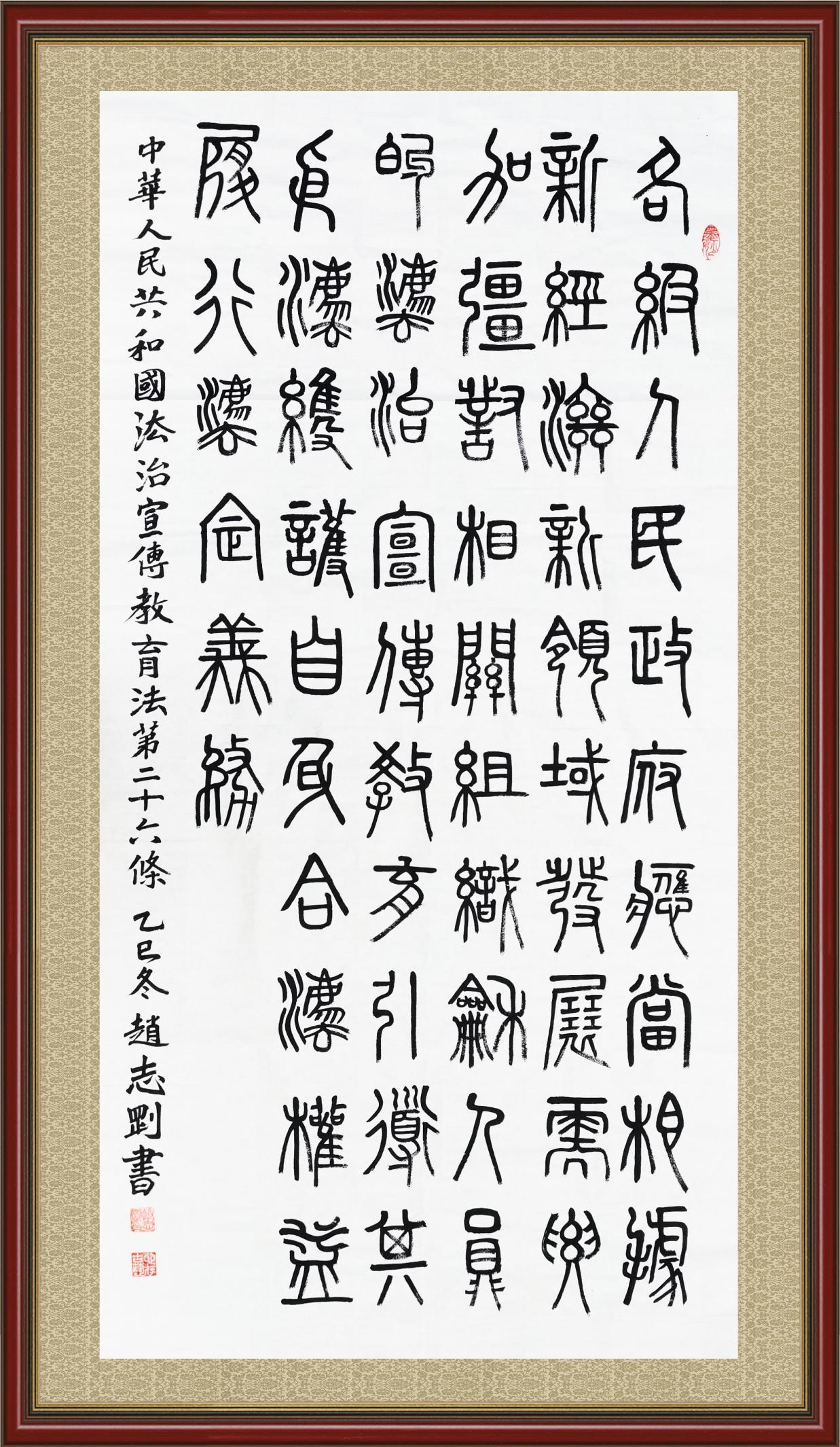2020年7月11日,由法治日報社主辦的“書·法”系列活動正式啟動,先后書寫《中華人民共和國民法典》《中華人民共和國憲法》《中華人民共和國民營經(jīng)濟(jì)促進(jìn)法》等21部法律法規(guī)。