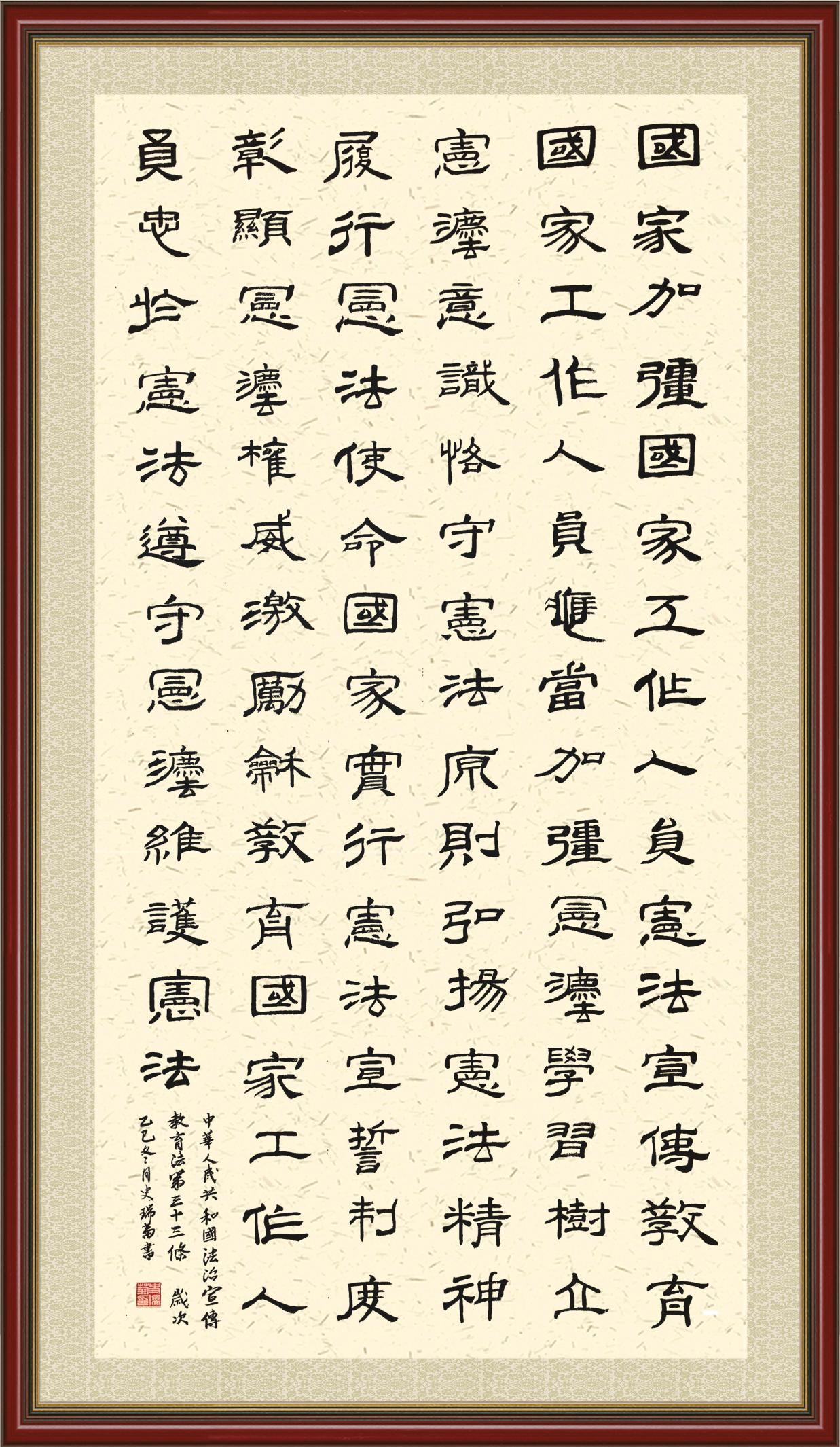 2020年7月11日,由法治日?qǐng)?bào)社主辦的“書(shū)·法”系列活動(dòng)正式啟動(dòng),先后書(shū)寫(xiě)《中華人民共和國(guó)民法典》《中華人民共和國(guó)憲法》《中華人民共和國(guó)民營(yíng)經(jīng)濟(jì)促進(jìn)法》等21部法律法規(guī)。
