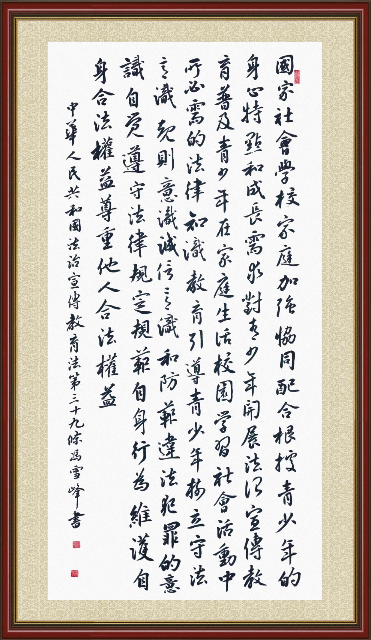 《中華人民共和國(guó)法治宣傳教育法》自2025年11月1日起開始施行。法治宣傳教育是全面依法治國(guó)的長(zhǎng)期基礎(chǔ)性工作。法治宣傳教育法對(duì)提升全民法治素養(yǎng)和社會(huì)治理法治化水平、推動(dòng)建設(shè)更高水平的社會(huì)主義法治國(guó)家具有重要意義。為更好地學(xué)習(xí)、宣傳、貫徹這部法律,法治日?qǐng)?bào)社聯(lián)合司法部普法與依法治理局,開展了“‘書·法’系列活動(dòng)之書寫《中華人民共和國(guó)法治宣傳教育法》”活動(dòng)。