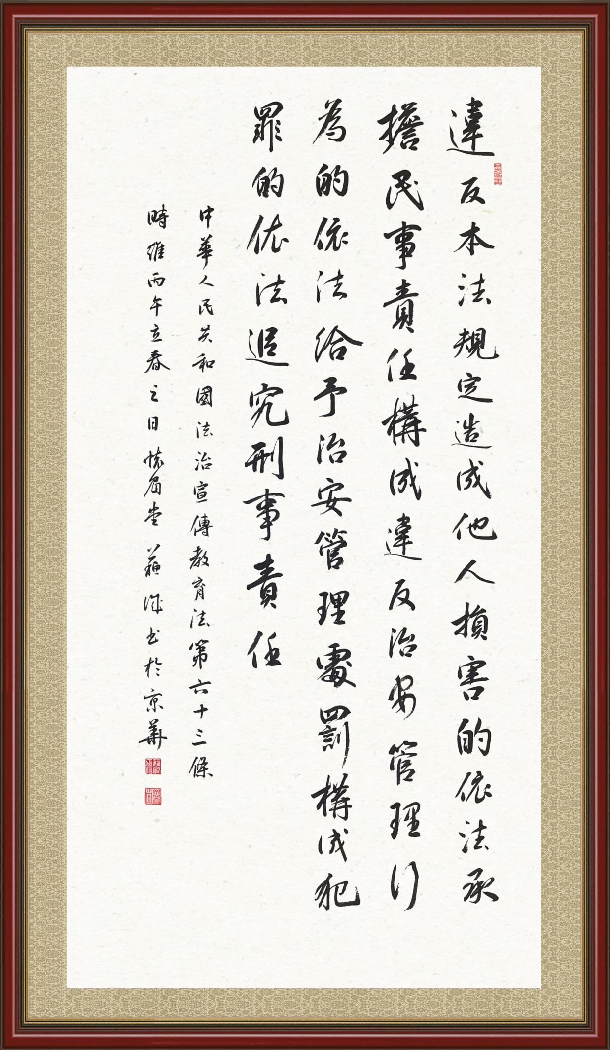 《中華人民共和國(guó)法治宣傳教育法》自2025年11月1日起開始施行。法治宣傳教育是全面依法治國(guó)的長(zhǎng)期基礎(chǔ)性工作。法治宣傳教育法對(duì)提升全民法治素養(yǎng)和社會(huì)治理法治化水平、推動(dòng)建設(shè)更高水平的社會(huì)主義法治國(guó)家具有重要意義。為更好地學(xué)習(xí)、宣傳、貫徹這部法律,法治日?qǐng)?bào)社聯(lián)合司法部普法與依法治理局,開展了“‘書·法’系列活動(dòng)之書寫《中華人民共和國(guó)法治宣傳教育法》”活動(dòng)。