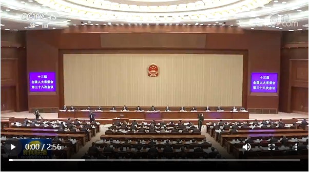新華社北京12月27日電?十三屆全國人大常委會第三十八次會議27日上午在北京人民大會堂舉行第一次全體會議。栗戰(zhàn)書委員長主持。