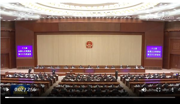12月27日,十三屆全國人大常委會(huì)第三十八次會(huì)議在北京人民大會(huì)堂舉行第一次全體會(huì)議。栗戰(zhàn)書委員長主持。新華社記者 龐興雷 攝