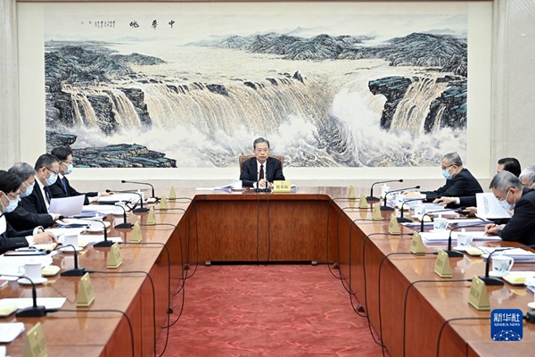 4月14日下午,十四屆全國人大常委會(huì)第二次委員長會(huì)議在北京人民大會(huì)堂舉行。趙樂際委員長主持會(huì)議。新華社記者 殷博古 攝