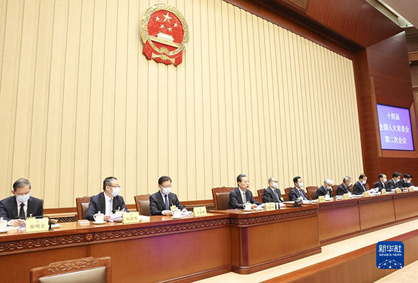 4月26日上午,十四屆全國(guó)人大常委會(huì)第二次會(huì)議在北京人民大會(huì)堂閉幕。趙樂際委員長(zhǎng)主持閉幕會(huì)。 新華社記者 龐興雷 攝