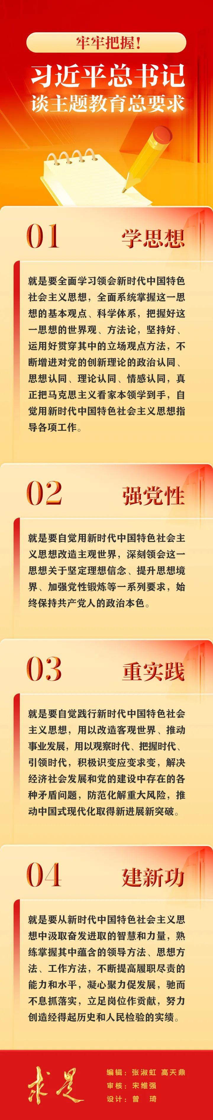 在2023年第9期《求是》雜志刊發(fā)的習(xí)近平總書記重要文章《在學(xué)習(xí)貫徹習(xí)近平新時(shí)代中國特色社會(huì)主義思想主題教育工作會(huì)議上的講話》中,總書記強(qiáng)調(diào)要“牢牢把握總要求”,“把這一總要求貫穿這次主題教育全過程”。